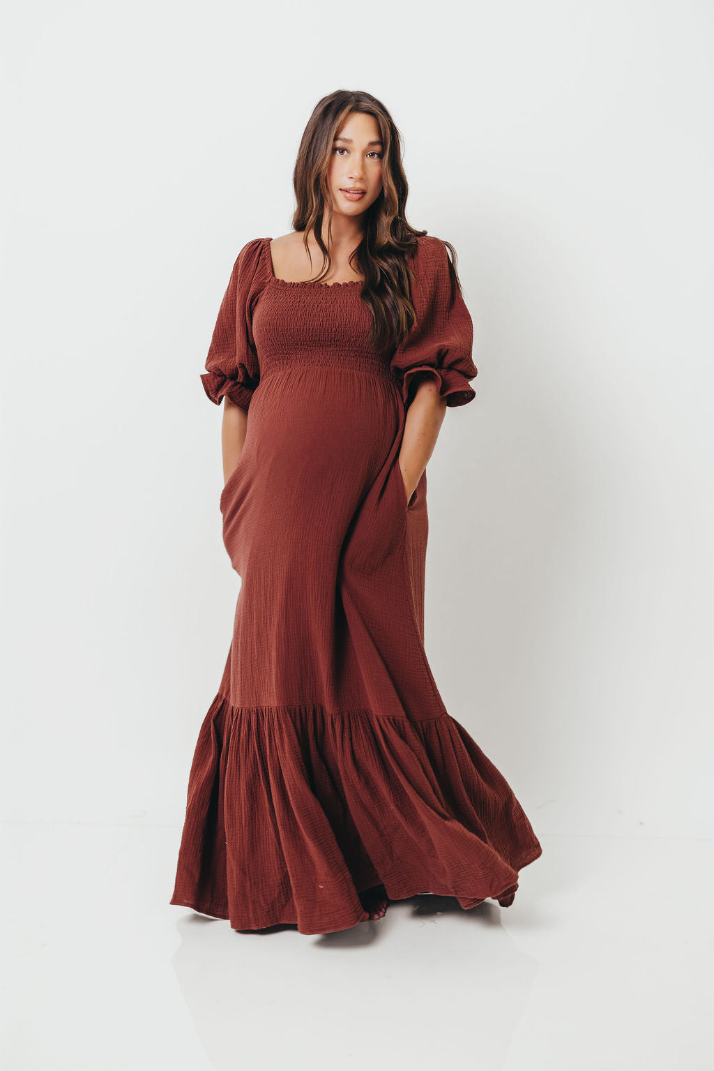 Livvy 100% Cotton Maxi Dress in Rust Brown - Bump Friendly