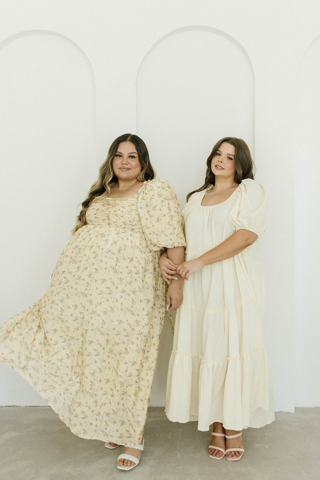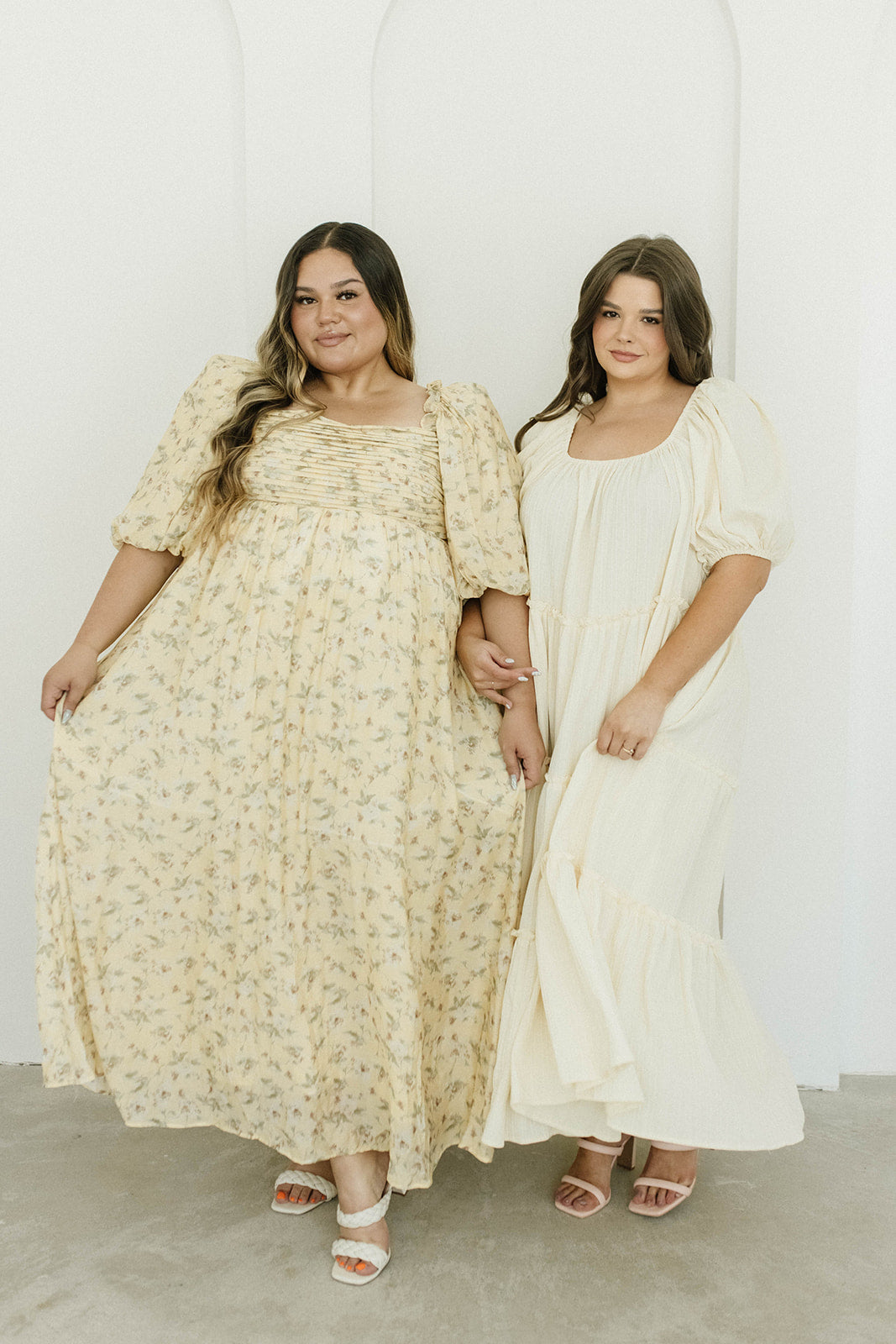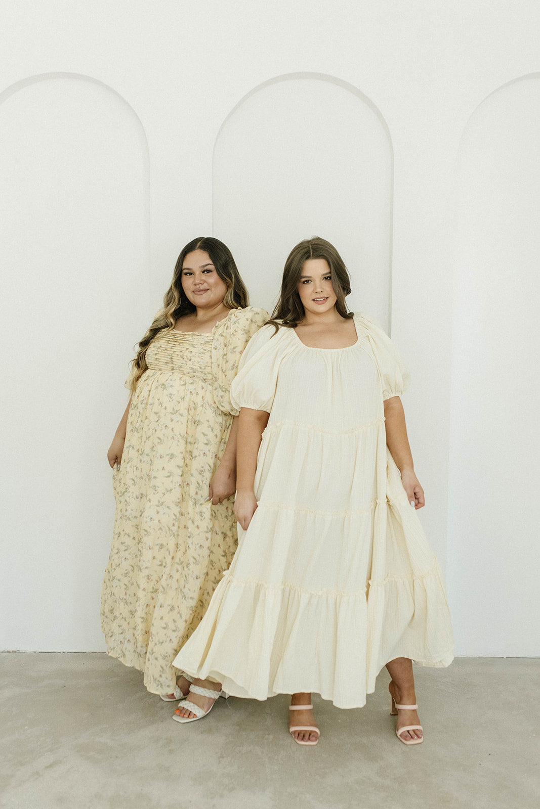 Look no further for your next wedding/baby shower/special event dress! The Melody Maxi Dress is the perfect combination of elegant and sweet. This lovely number has ALL the details: square neckline, balloon sleeves, and a jaw-dropping self-tie sash that makes the <chef's kiss> of bows. This gem is guaranteed to become a treasured addition to your wardrobe!