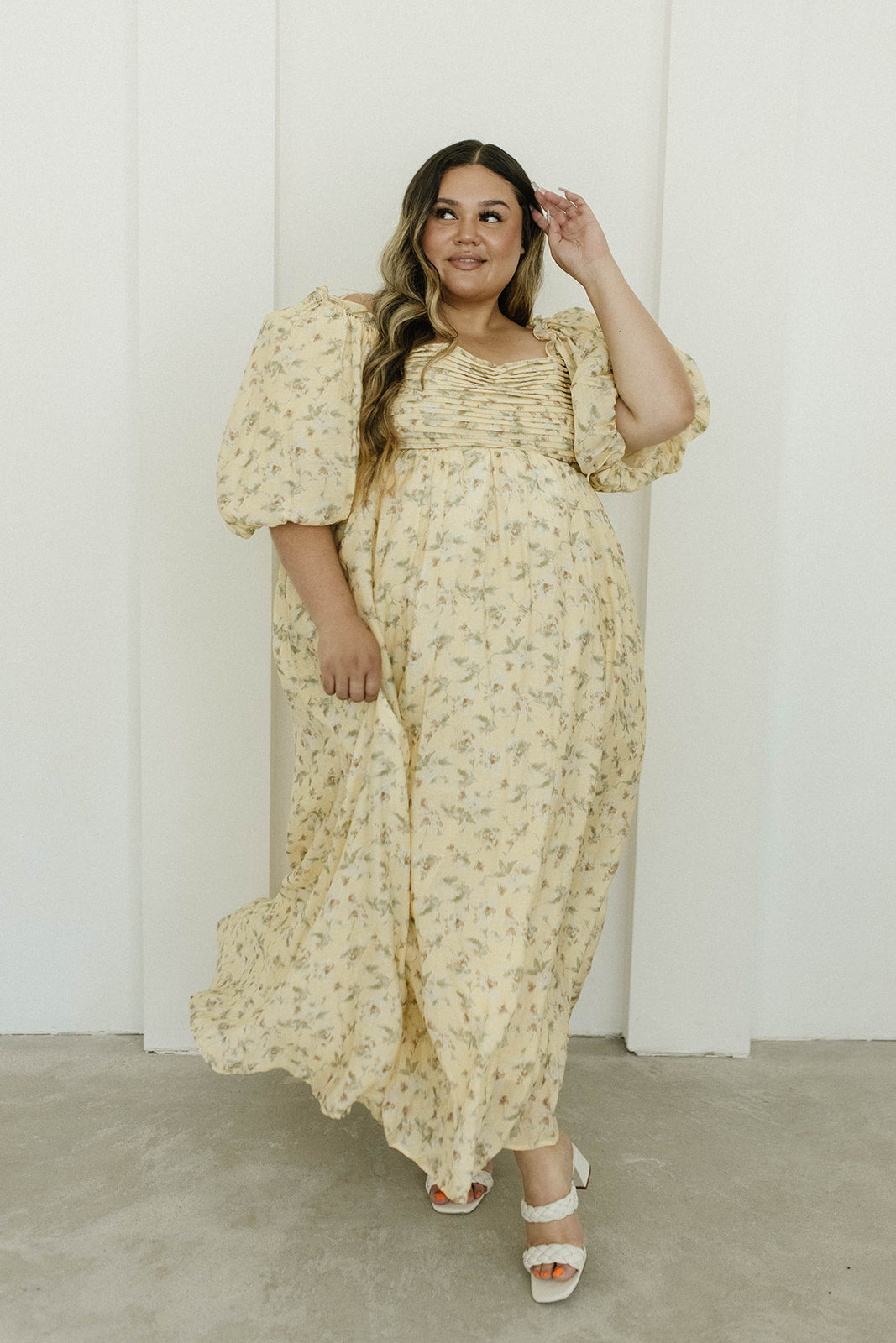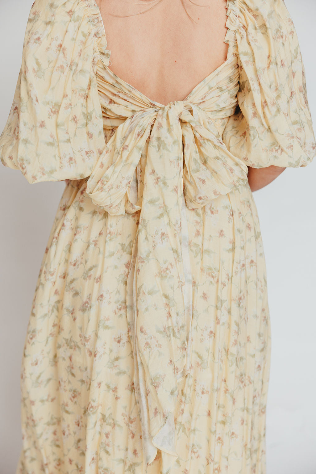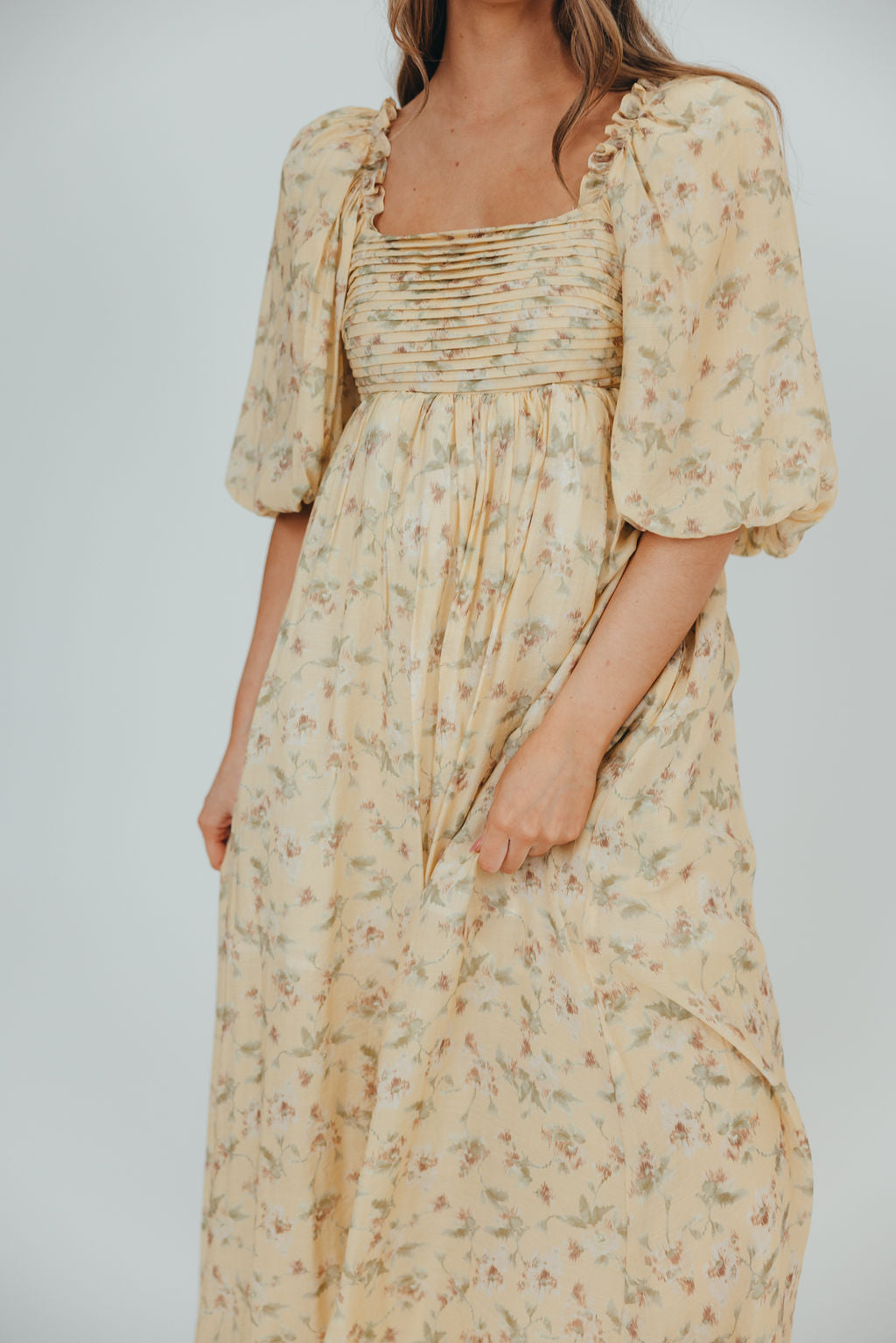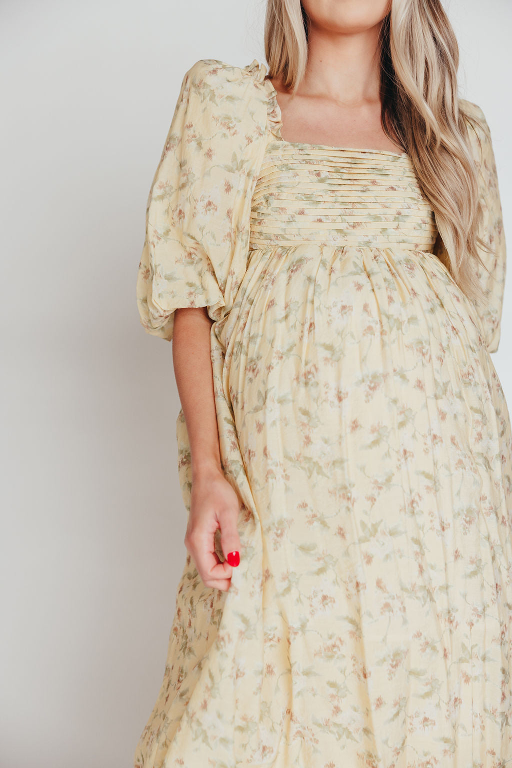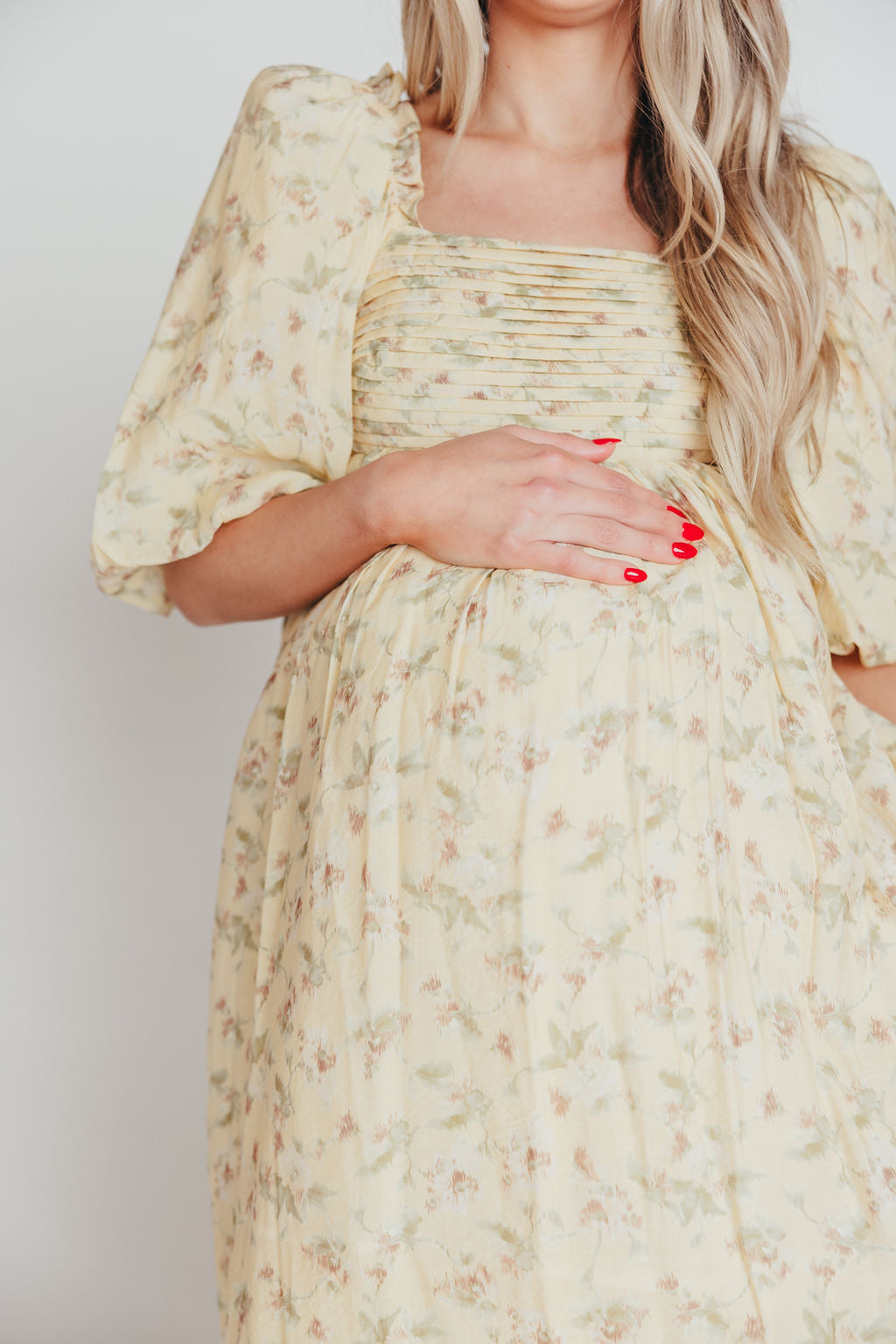 Melody Maxi Dress with Pleats and Bow Detail in Yellow Floral - Bump Friendly & Inclusive Sizing (S-3XL)
