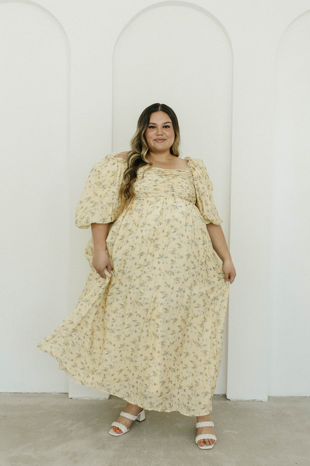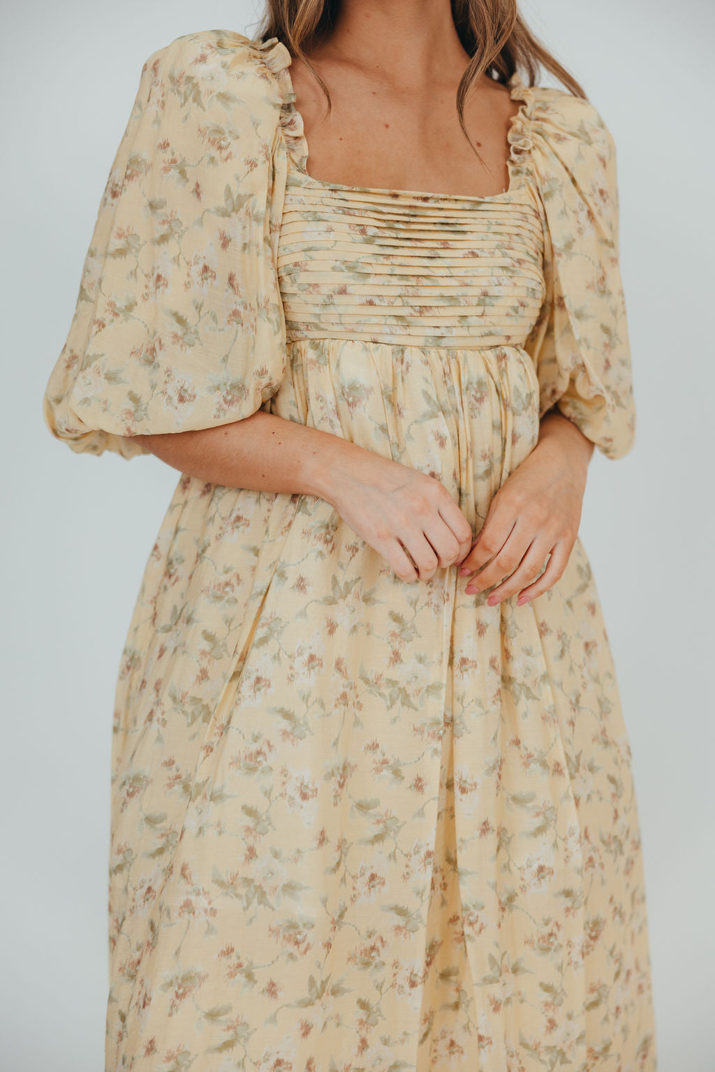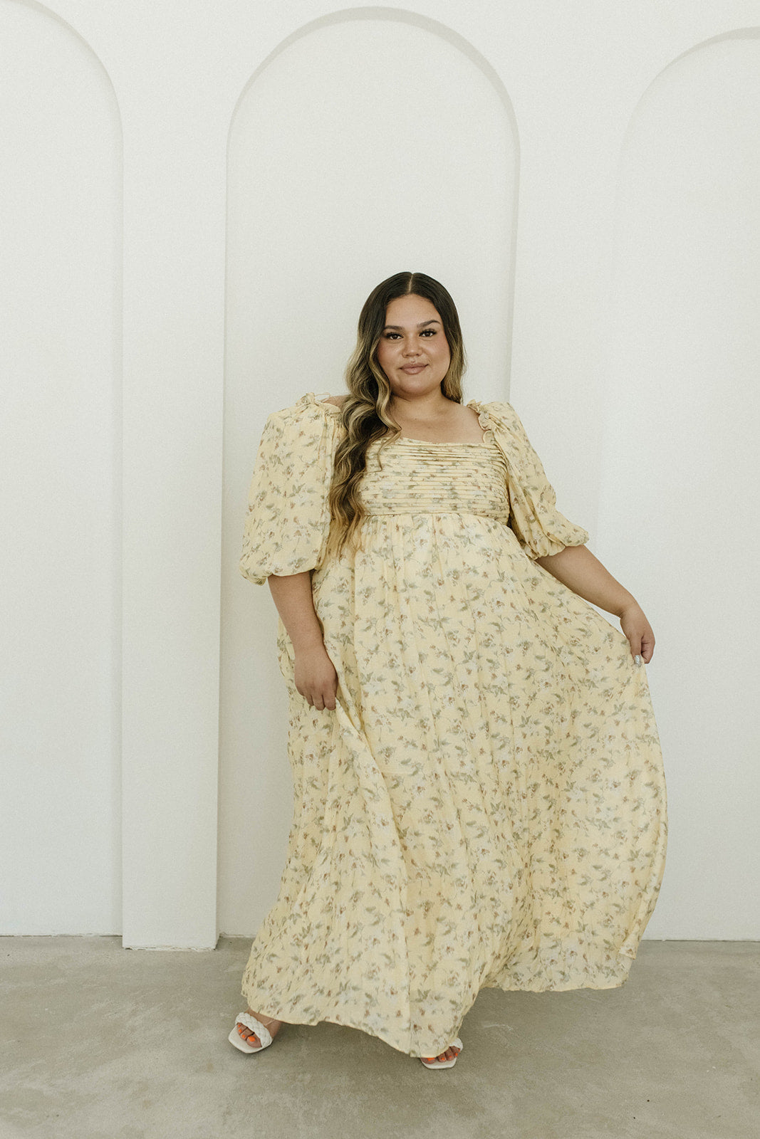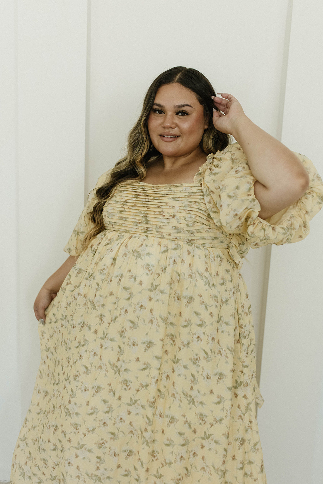 Melody Maxi Dress with Pleats and Bow Detail in Yellow Floral - Bump Friendly & Inclusive Sizing (S-3XL)