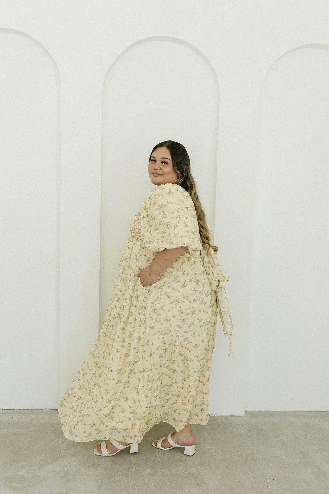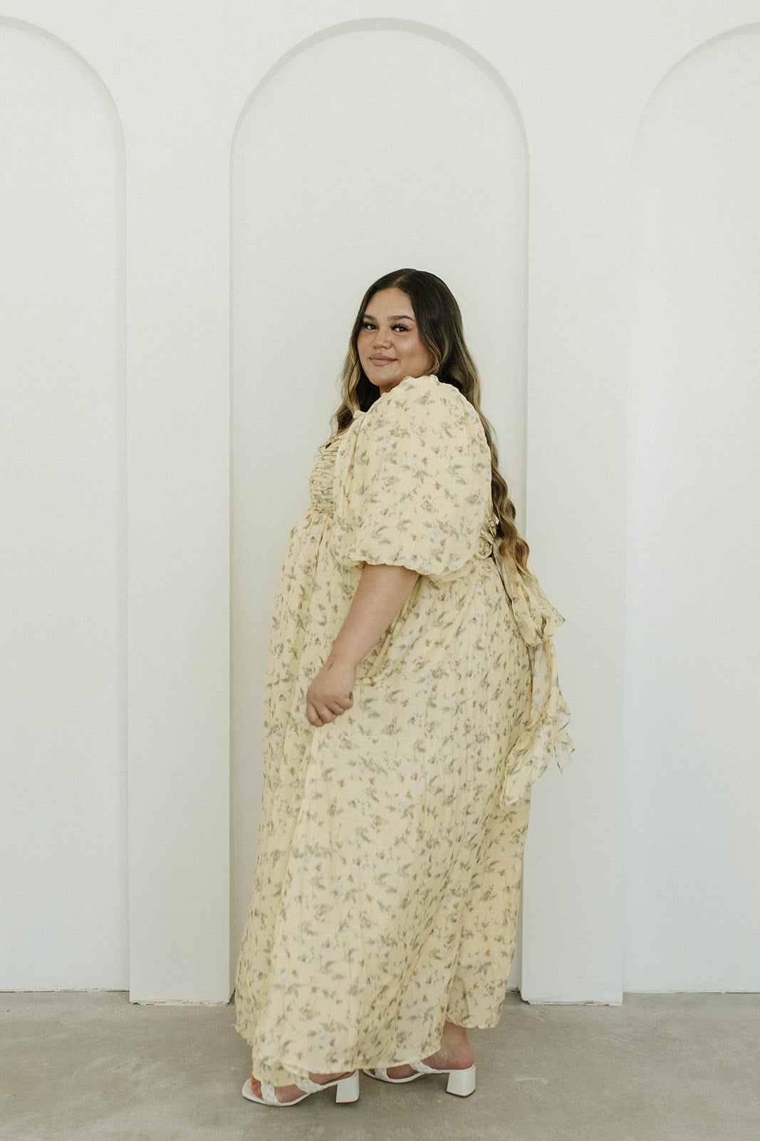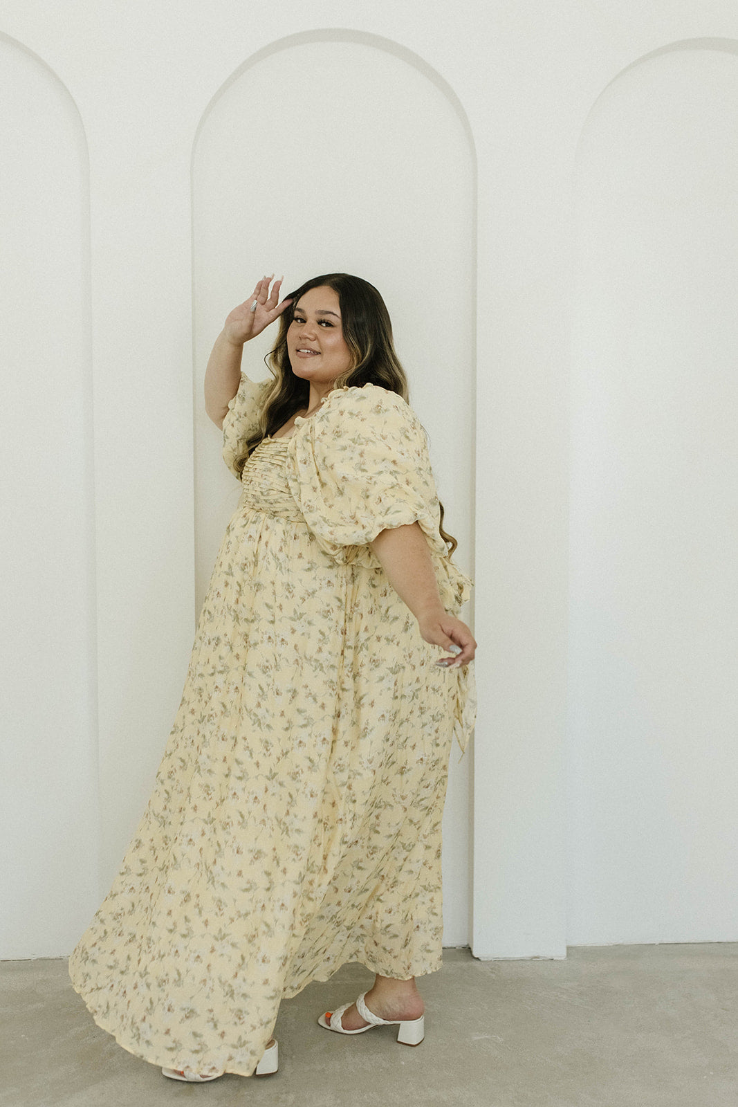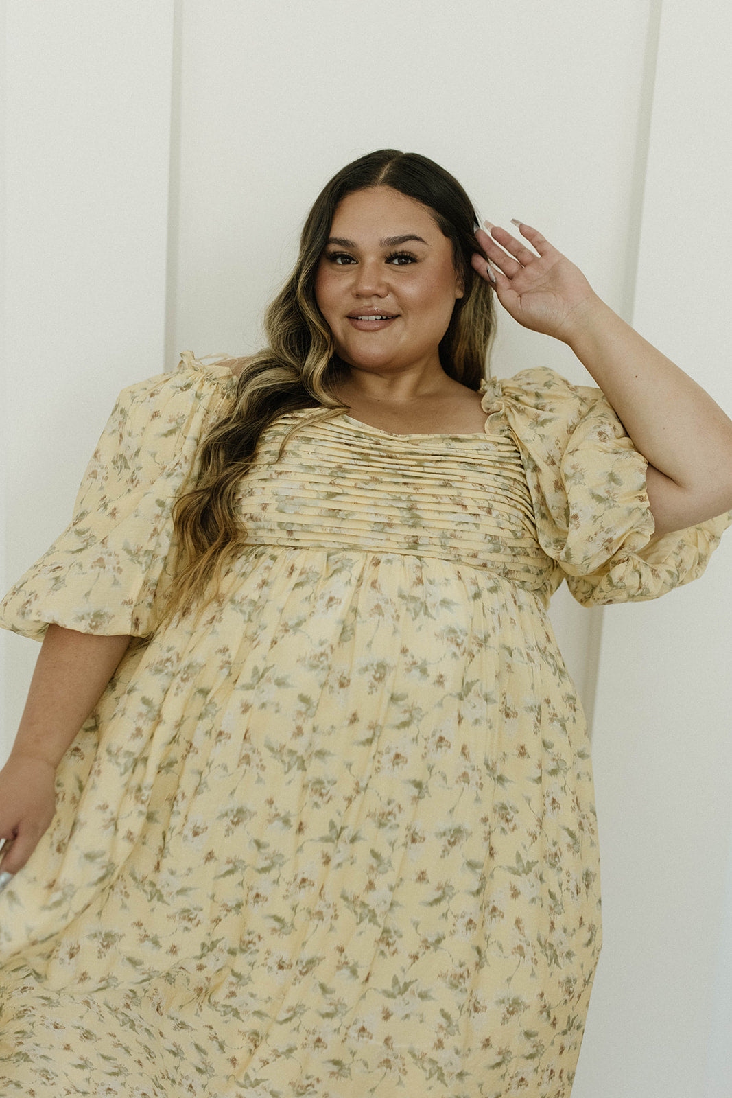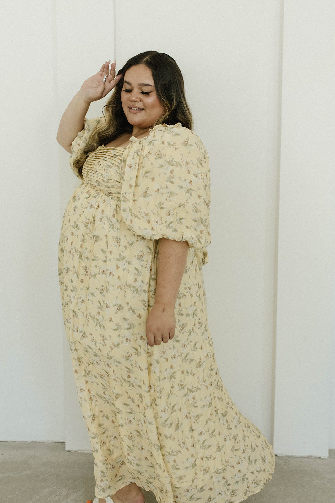 Melody Maxi Dress with Pleats and Bow Detail in Yellow Floral - Bump Friendly & Inclusive Sizing (S-3XL)