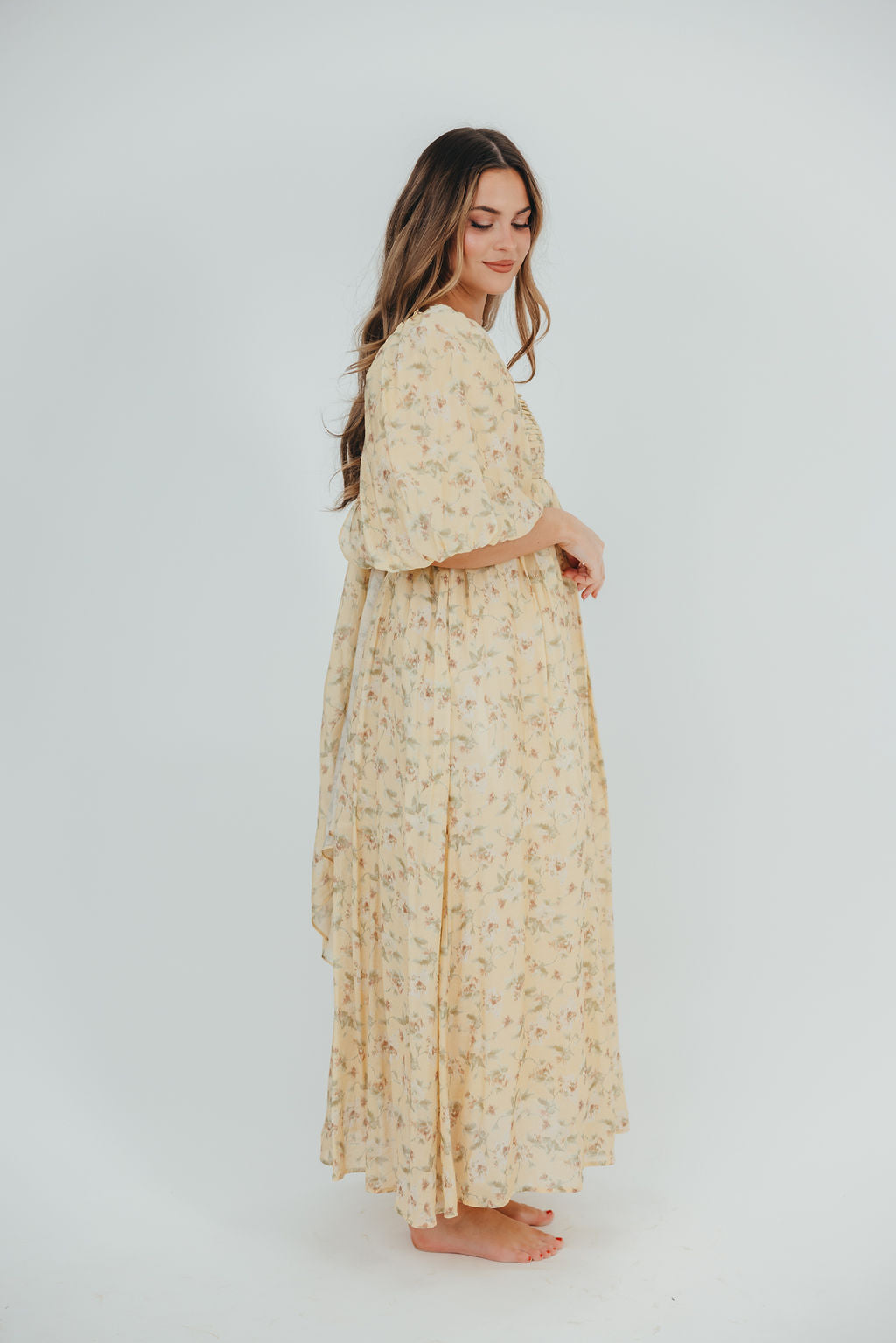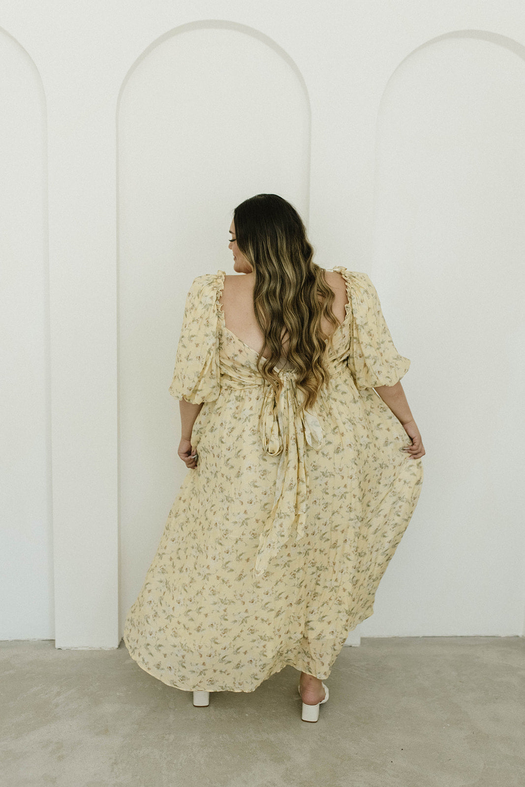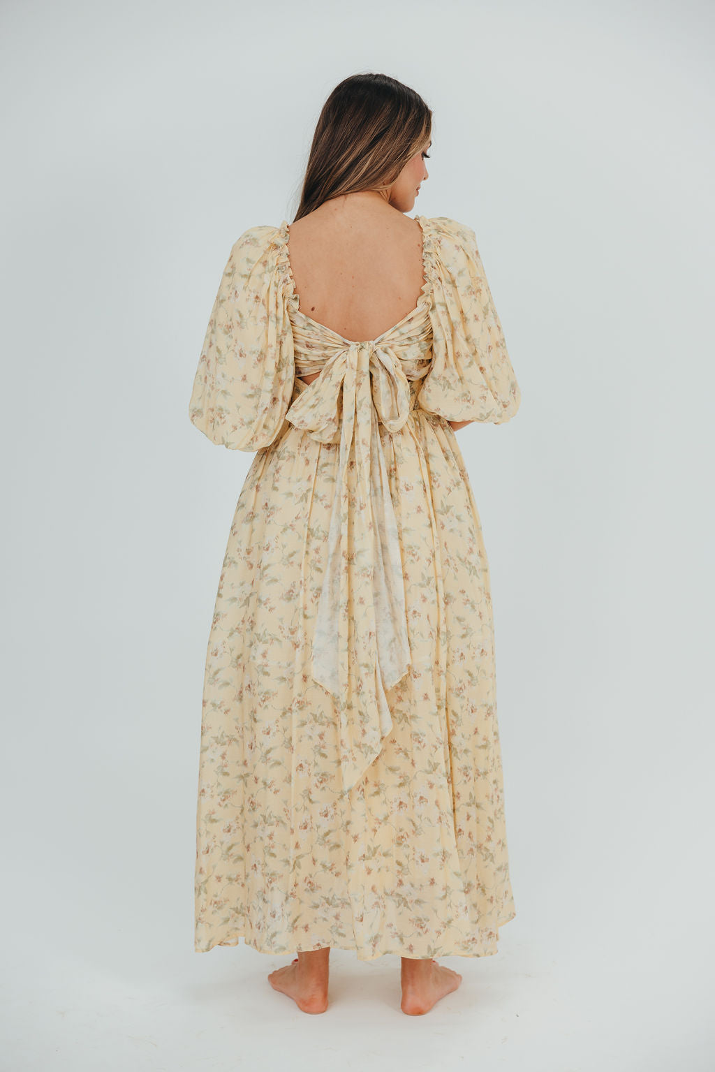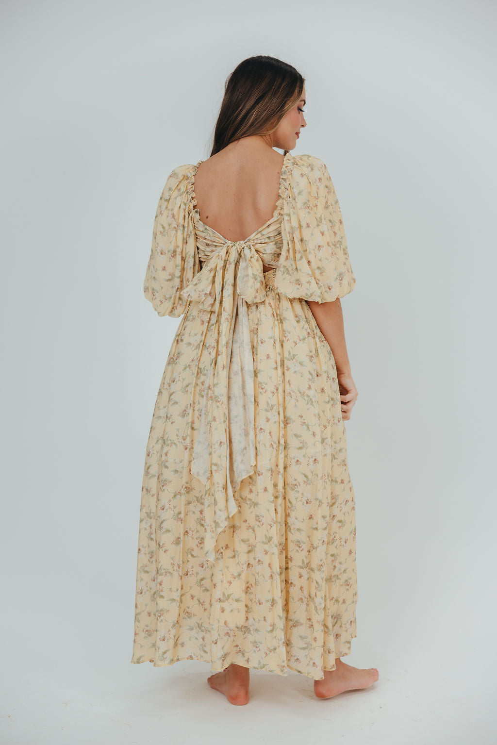 Melody Maxi Dress with Pleats and Bow Detail in Yellow Floral - Bump Friendly & Inclusive Sizing (S-3XL)