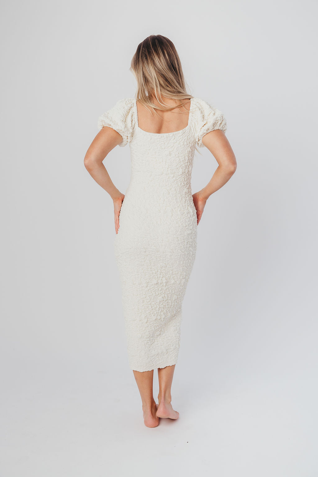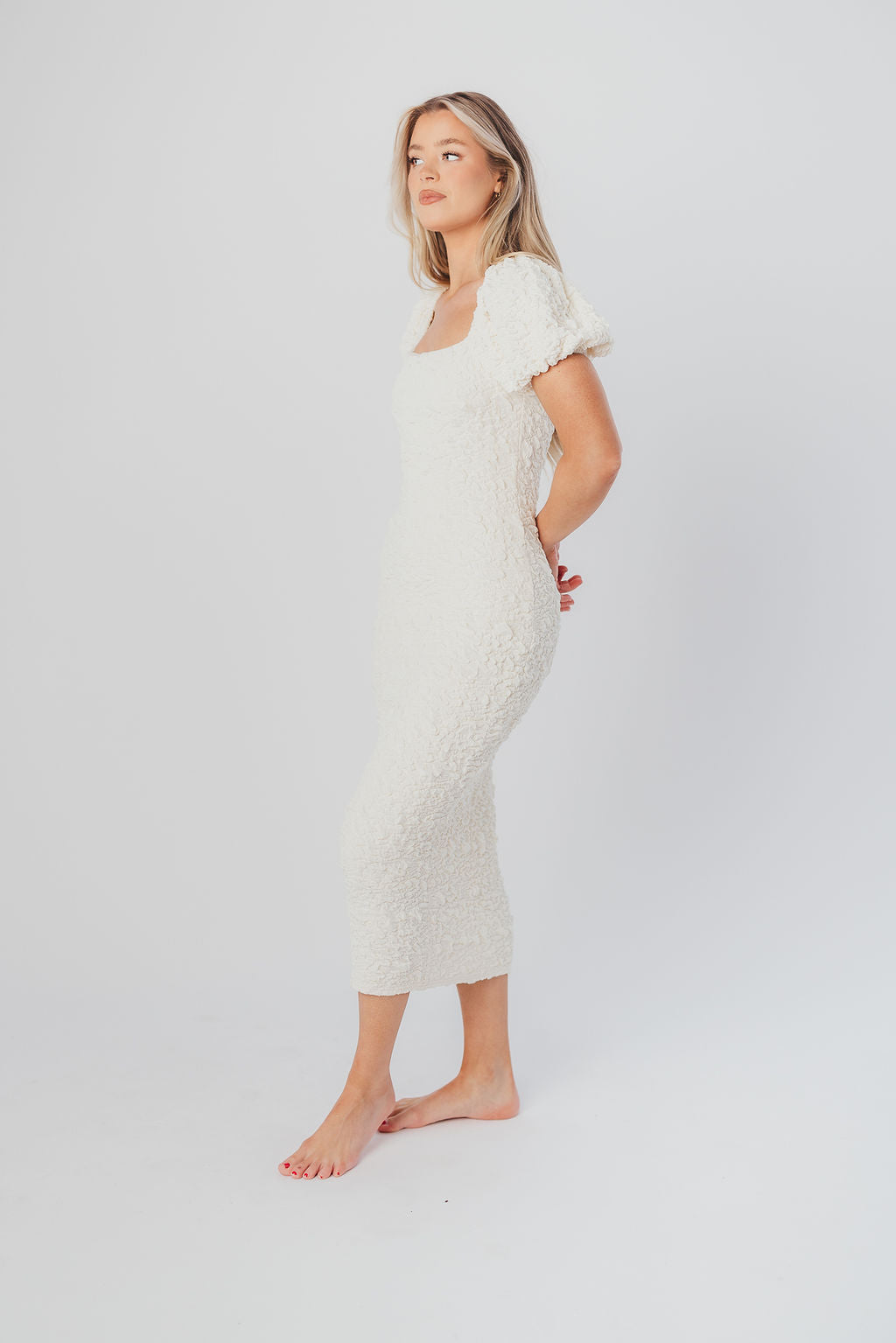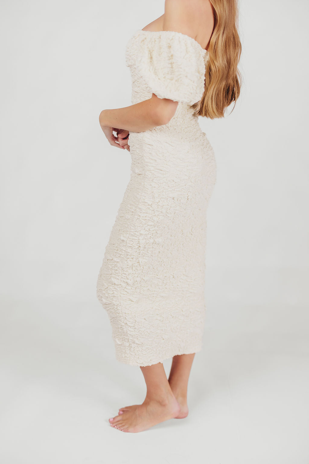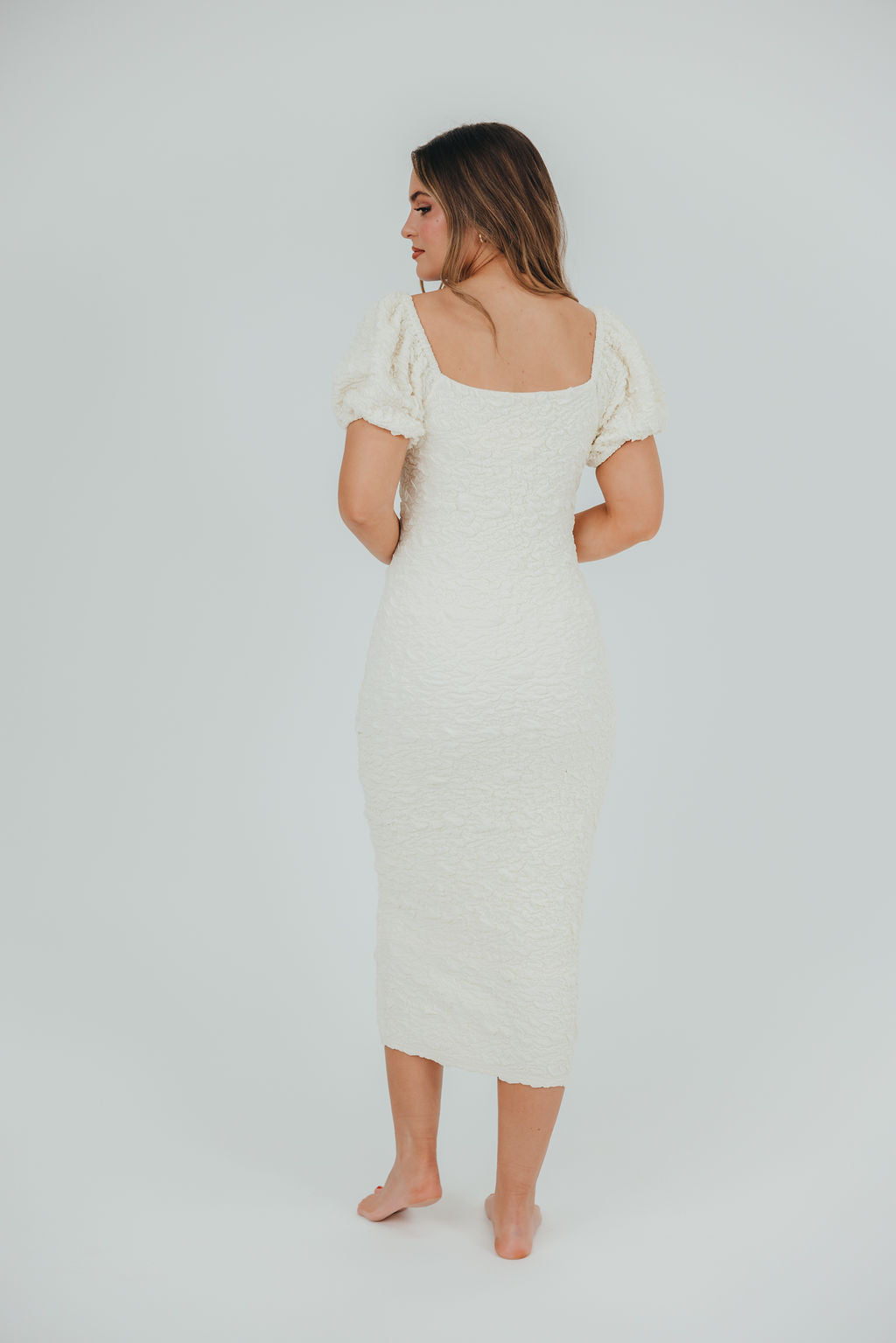 Blakeley Textured Midi Dress in Ivory - Bump Friendly & Inclusive Sizing (S-3XL)