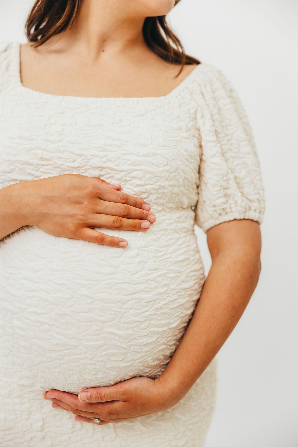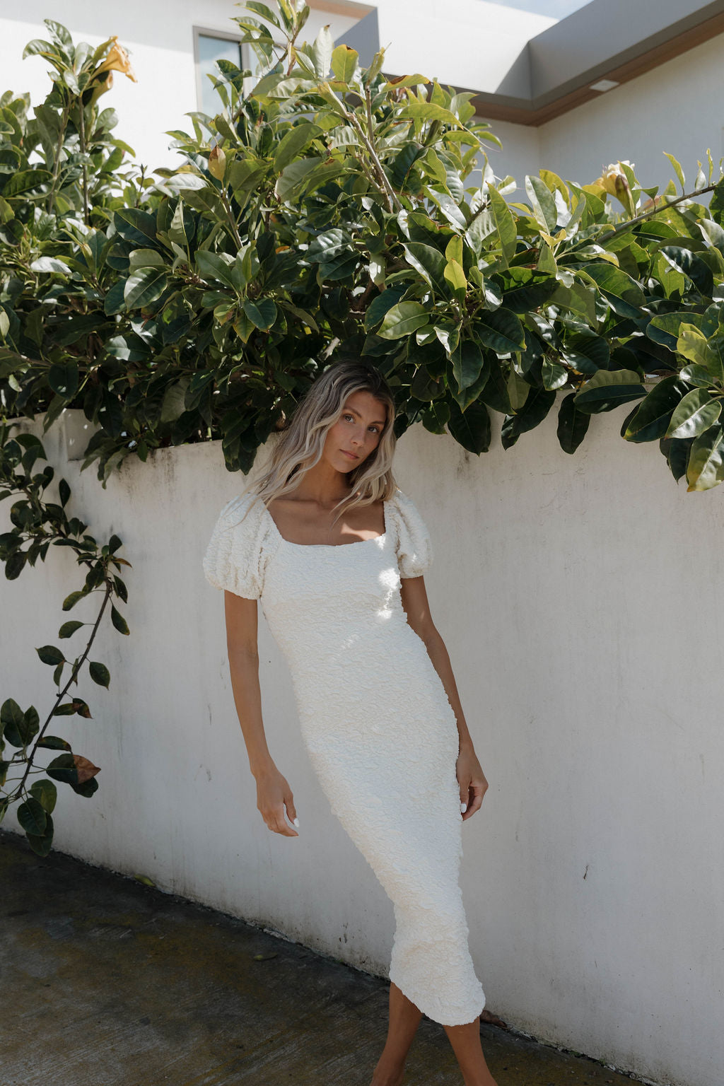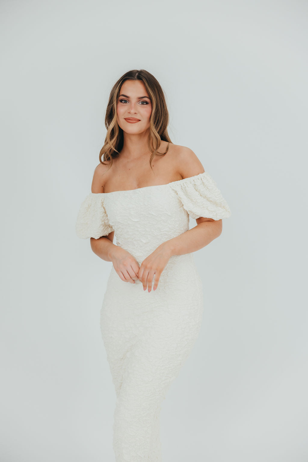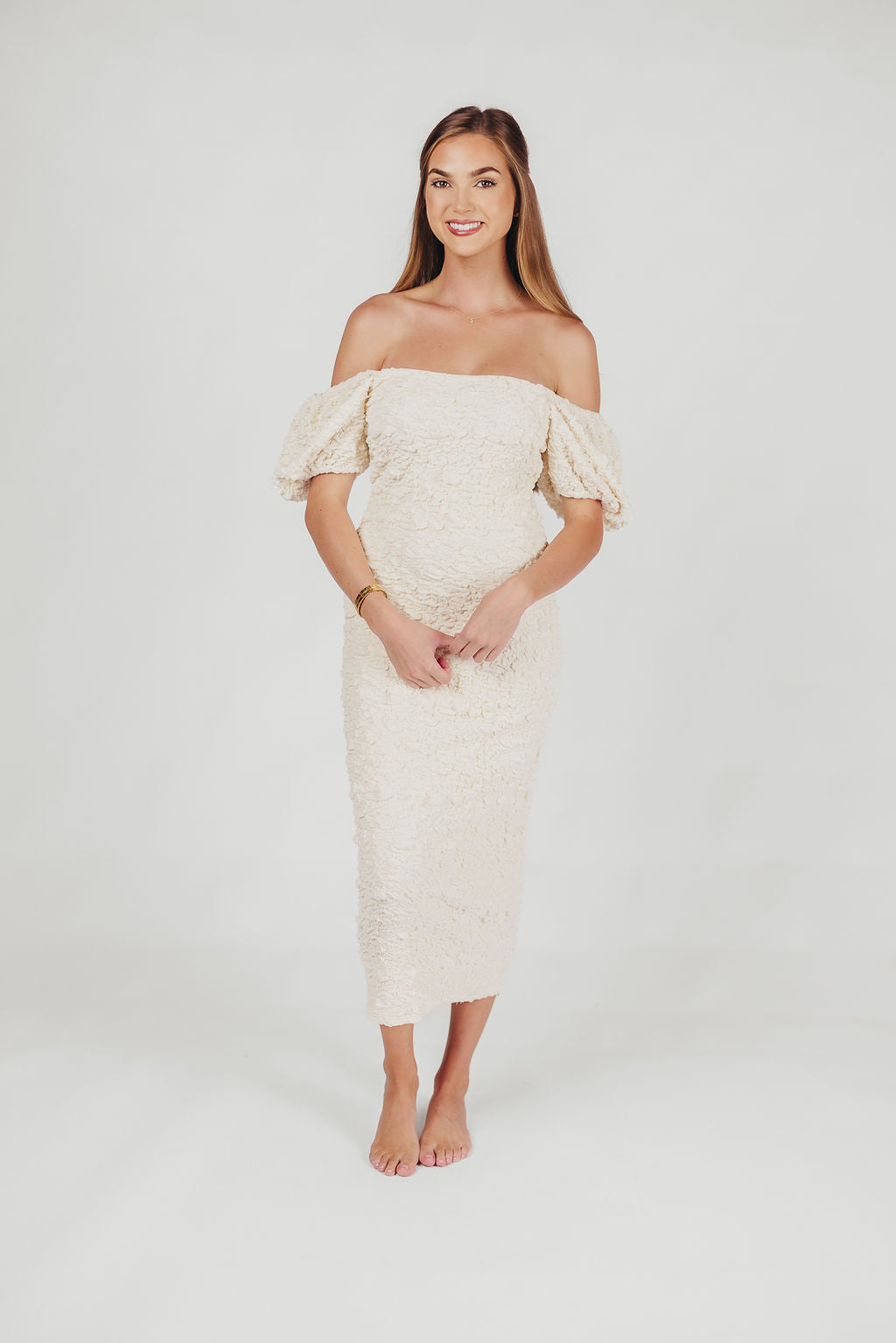 Blakeley Textured Midi Dress in Ivory - Bump Friendly & Inclusive Sizing (S-3XL)