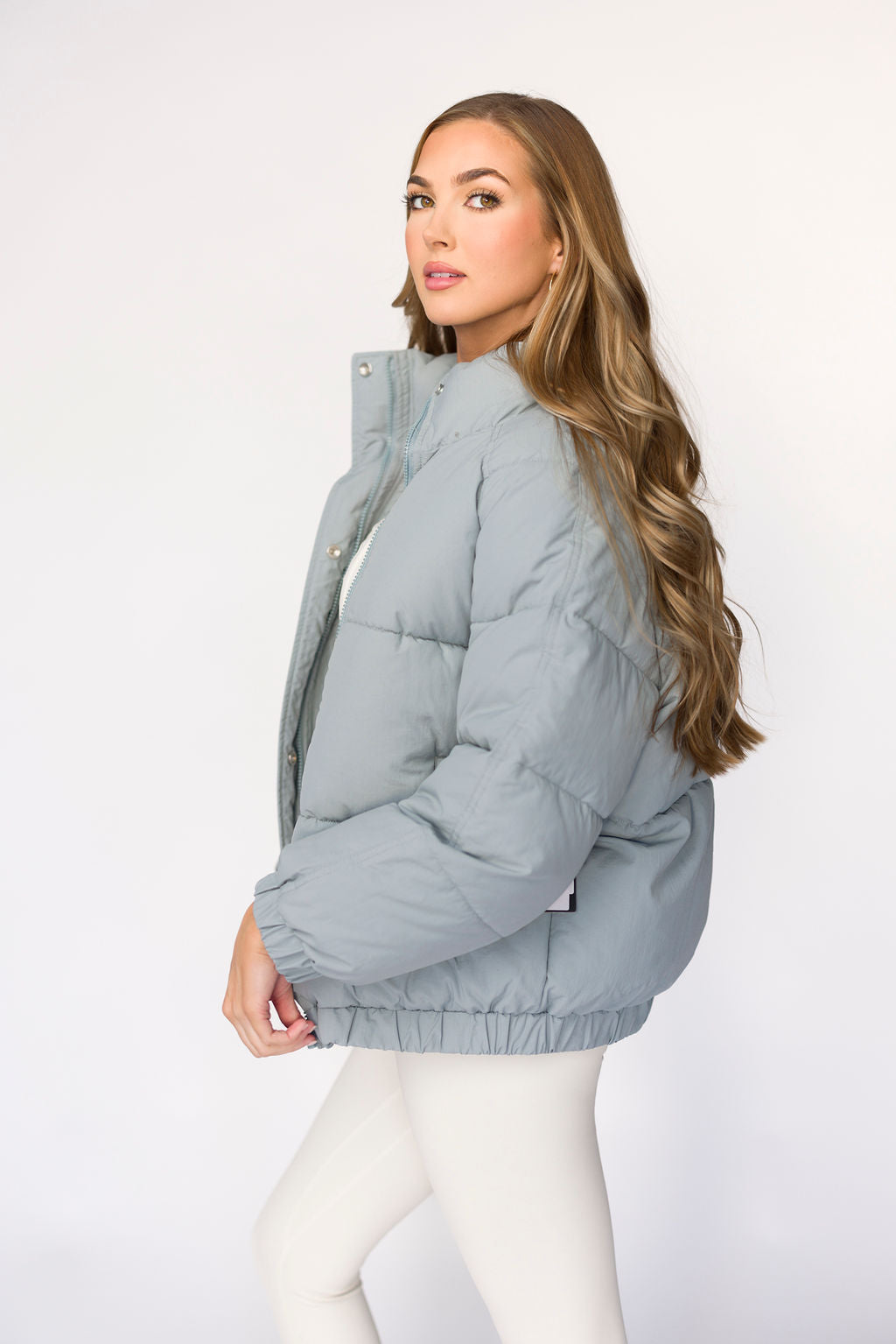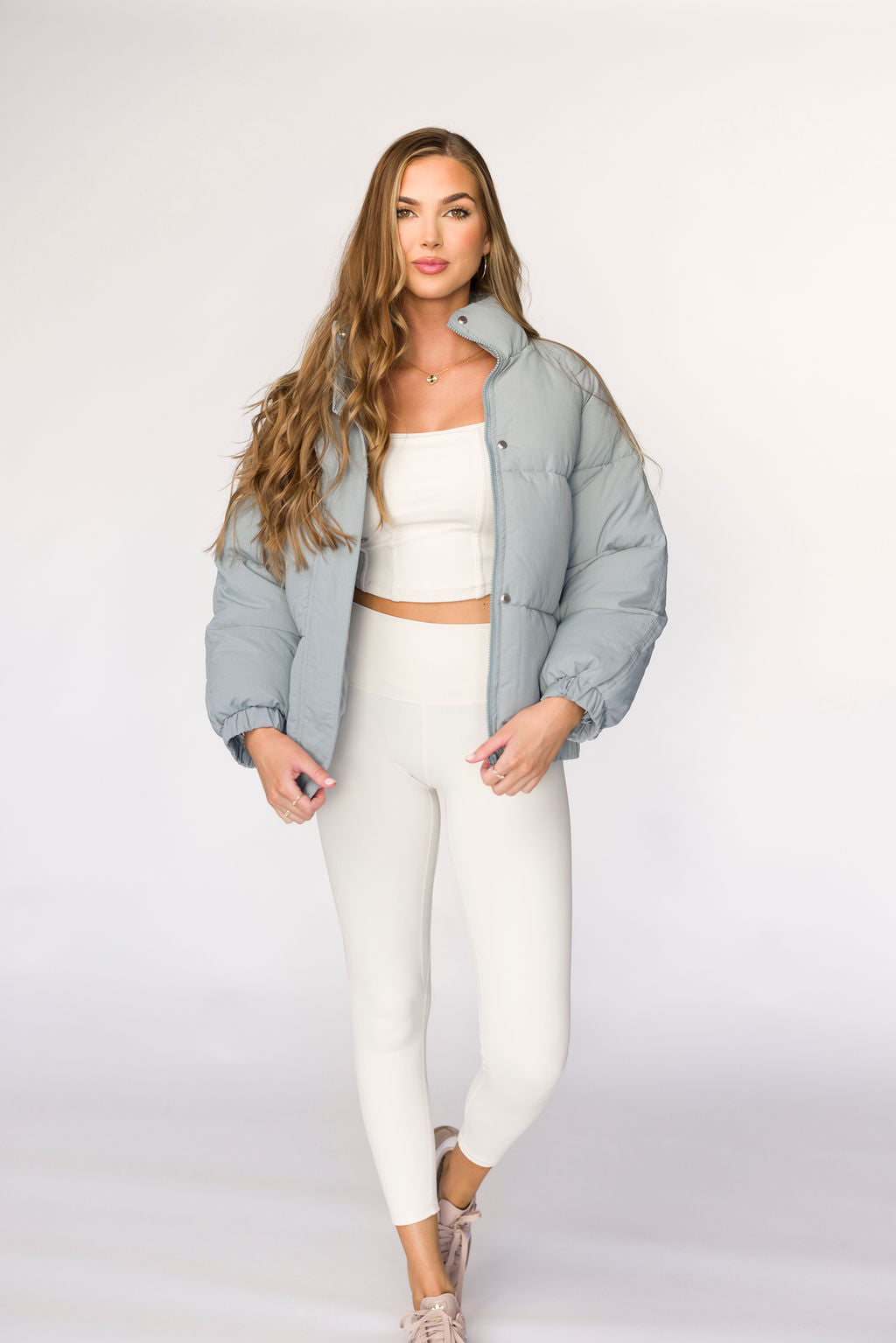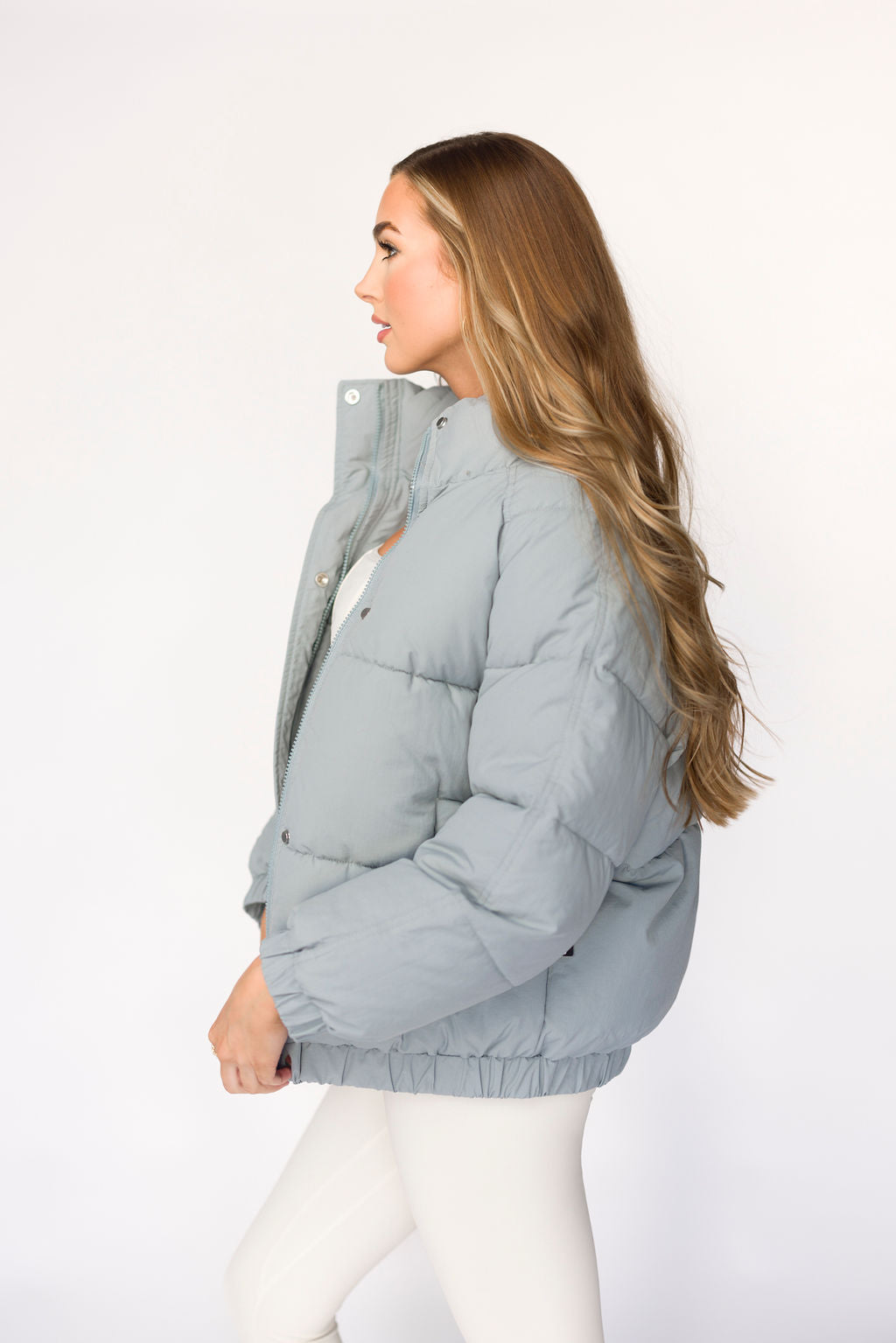 The Jasmine Puffer Jacket is a lovely addition to your outerwear this season! Its icy hue and oversized profile are perfect for pairing with sweaters, cardigans, or athleisure.