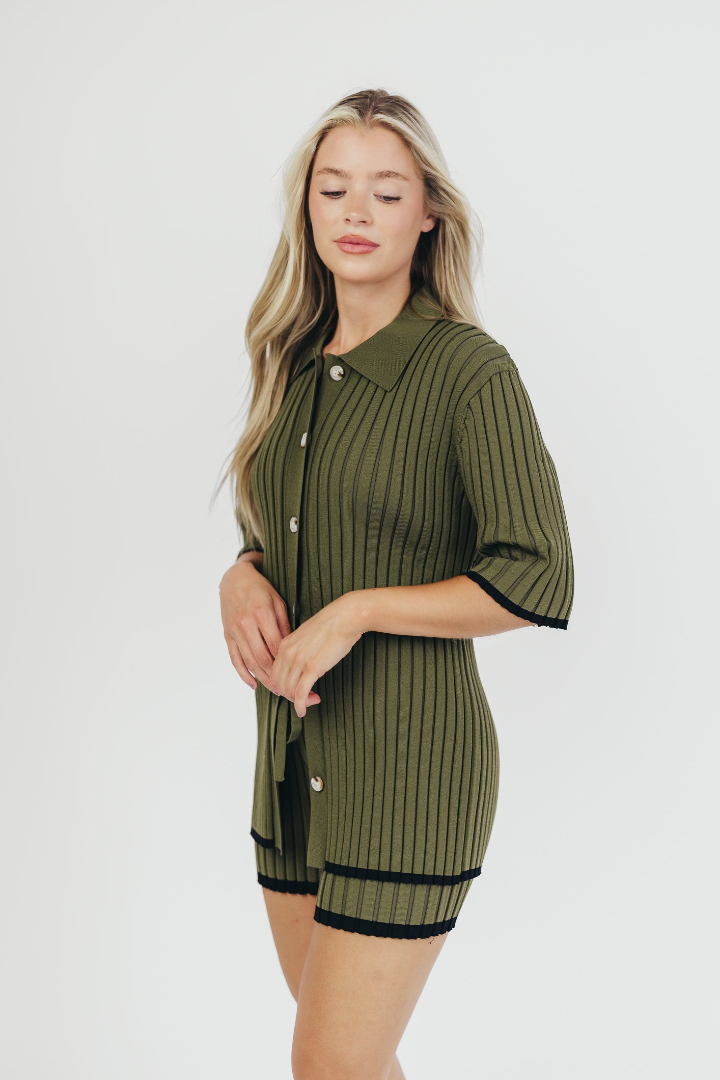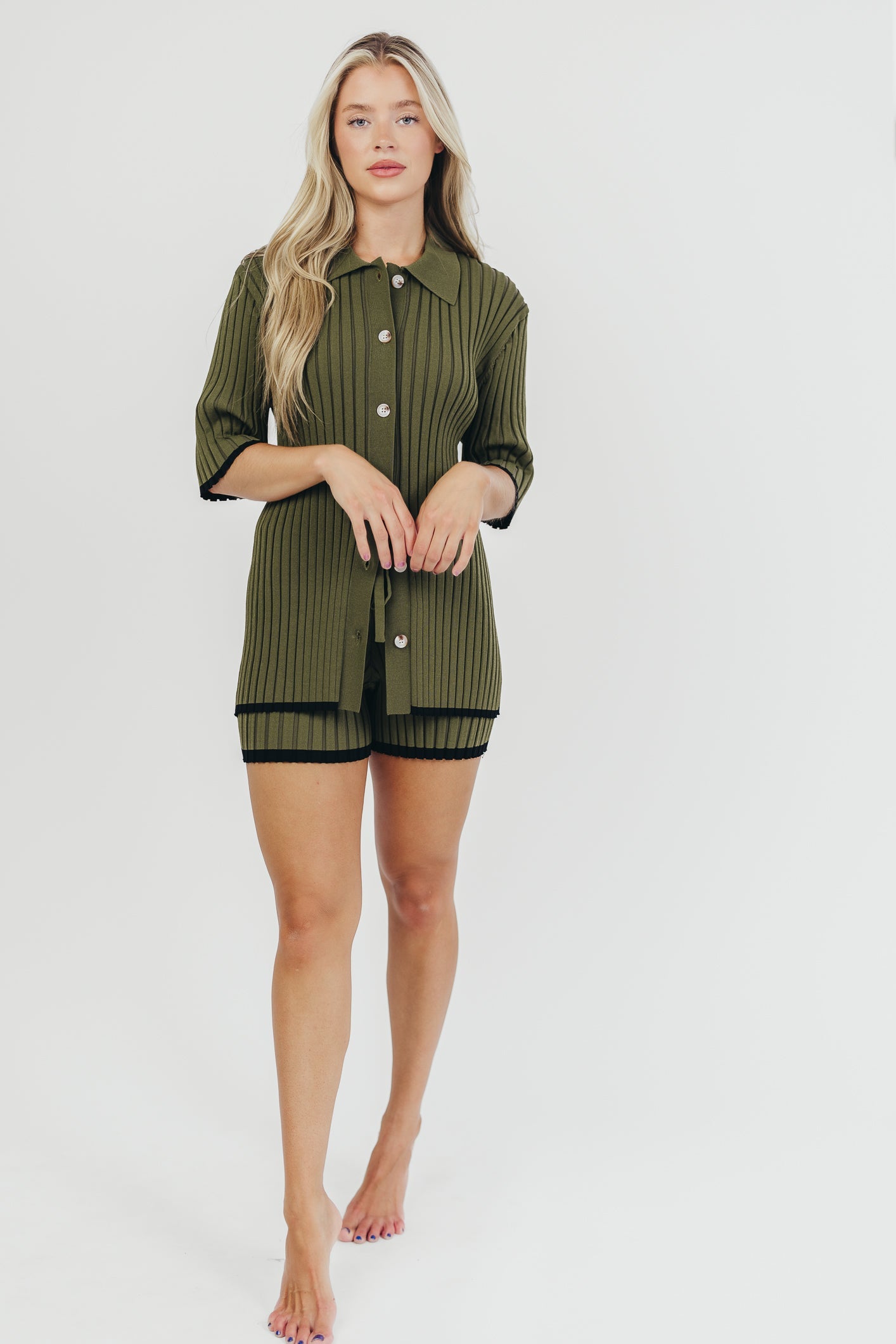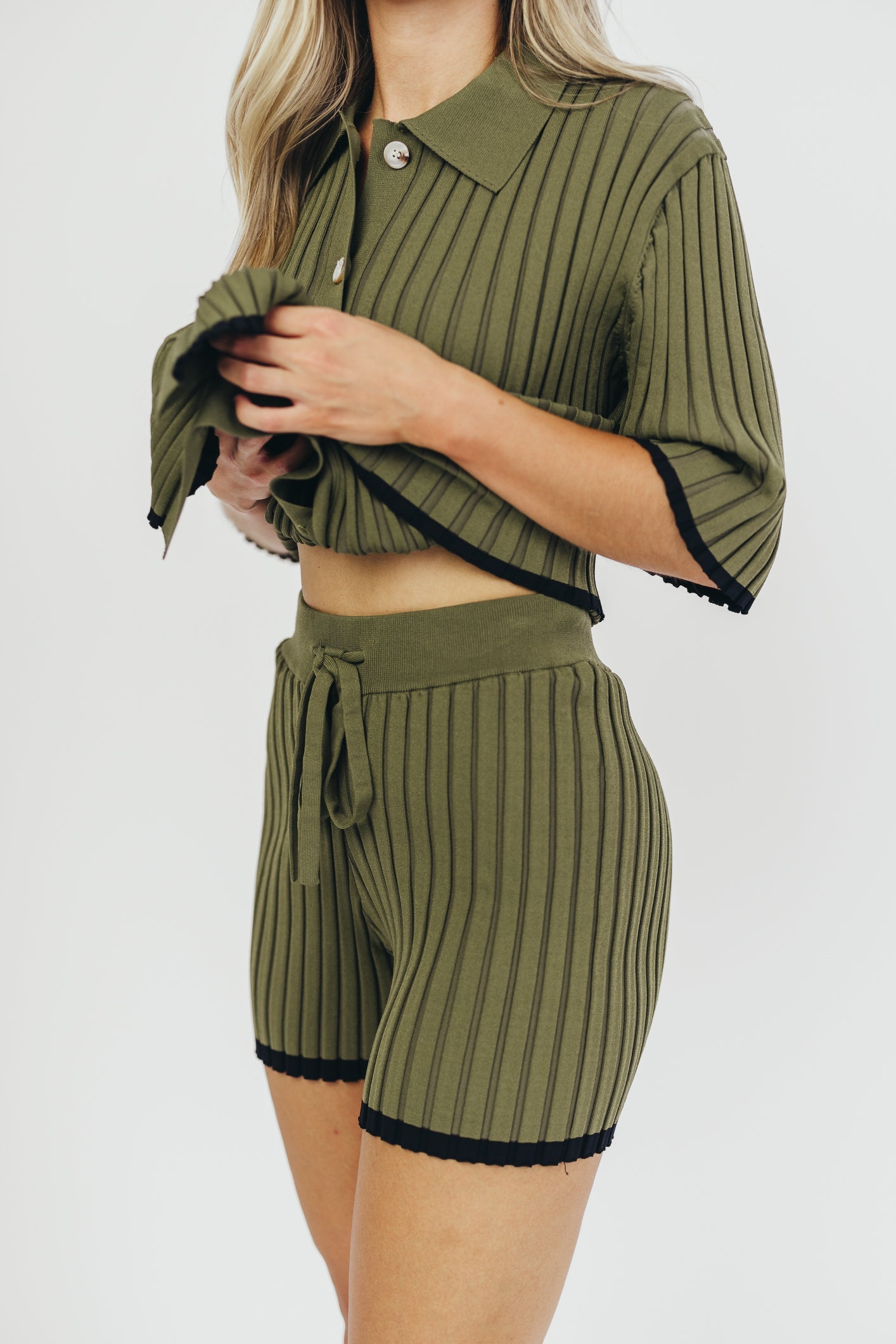 Brooke Ribbed Knit Top and Short Set in Green - Nursing Friendly
