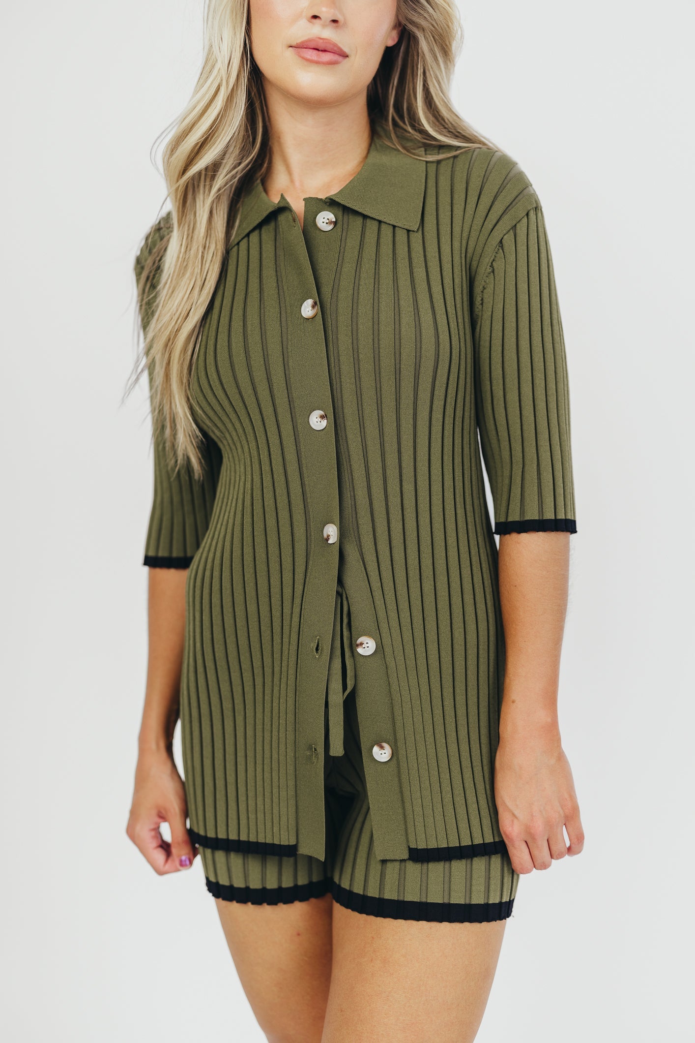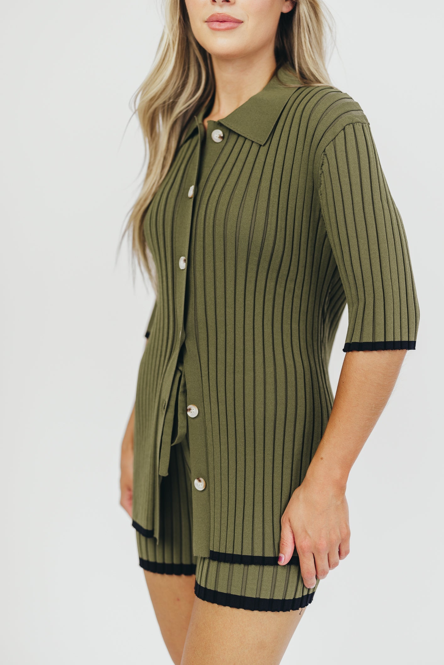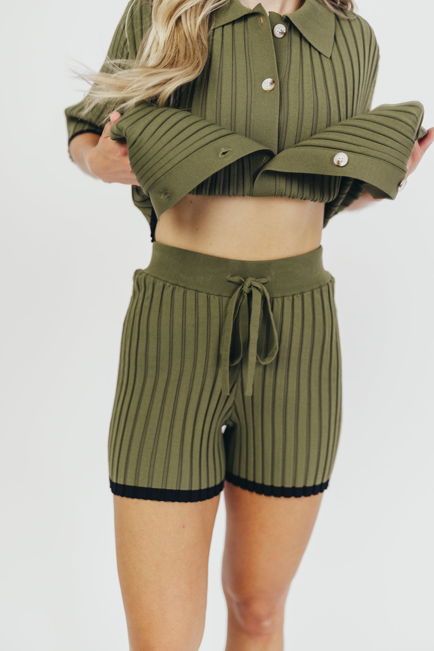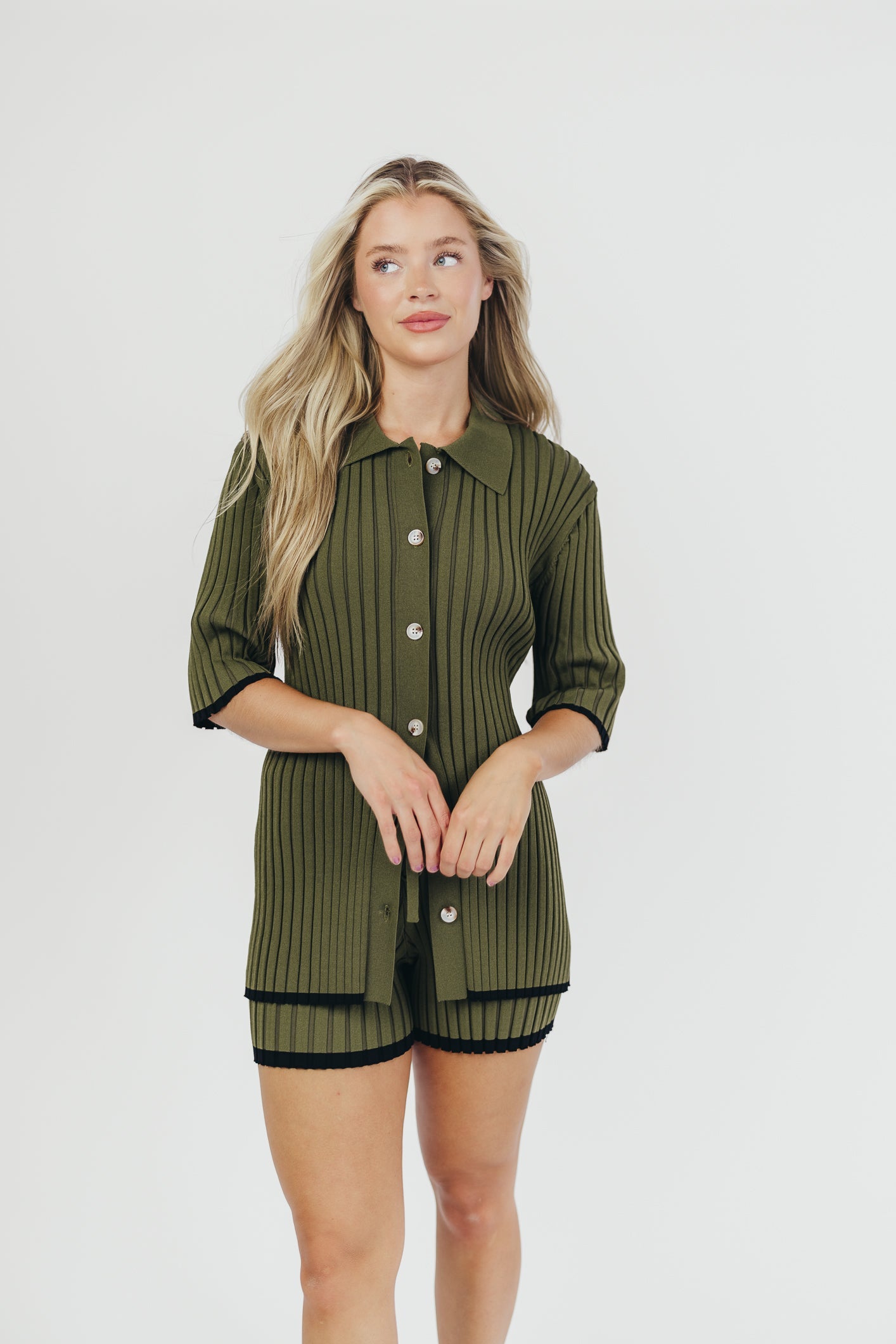 Brooke Ribbed Knit Top and Short Set in Green - Nursing Friendly
