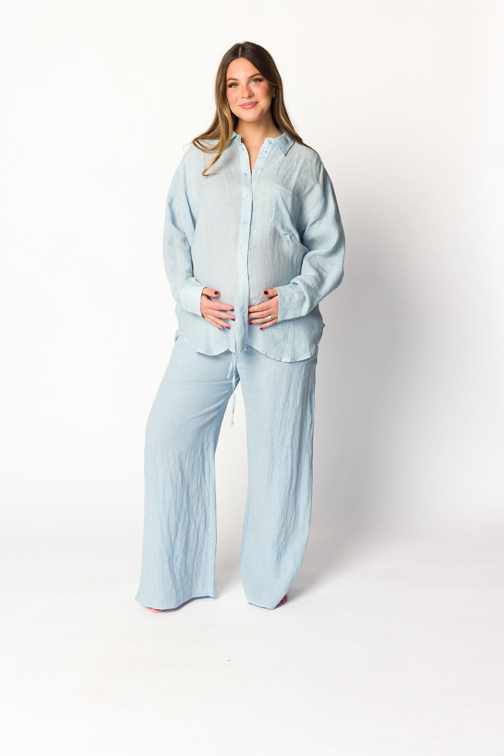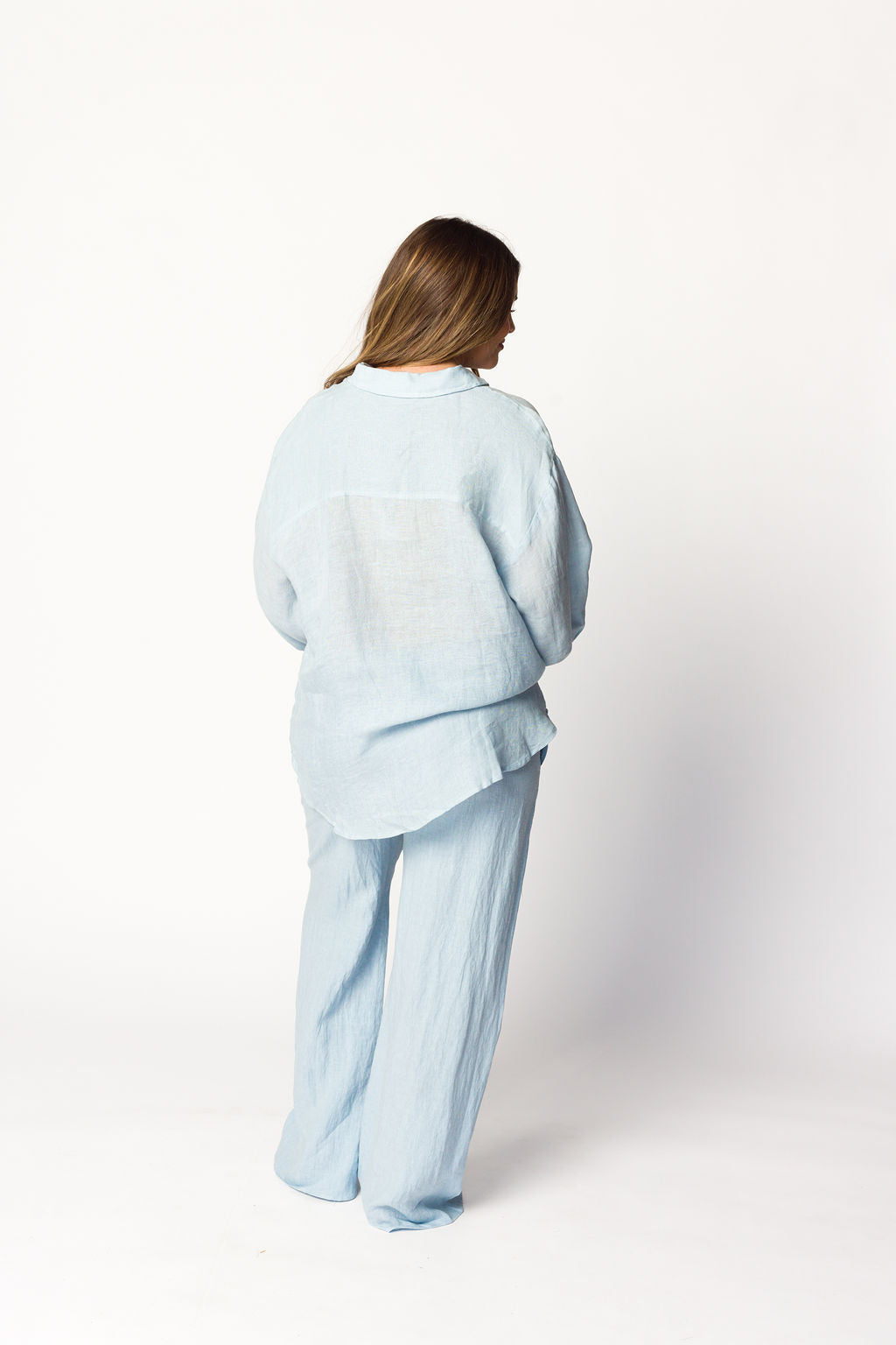 GARMENT DETAILS: Relaxed fit, full length pants in 100% linen. Feature a wide-leg silhouette, with dual pockets and a drawstring waist.