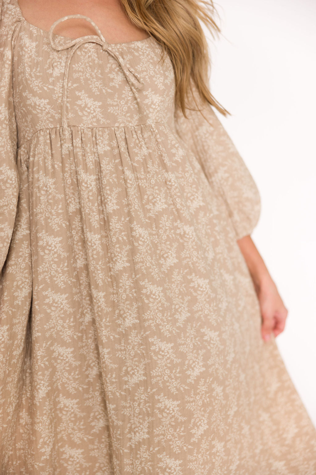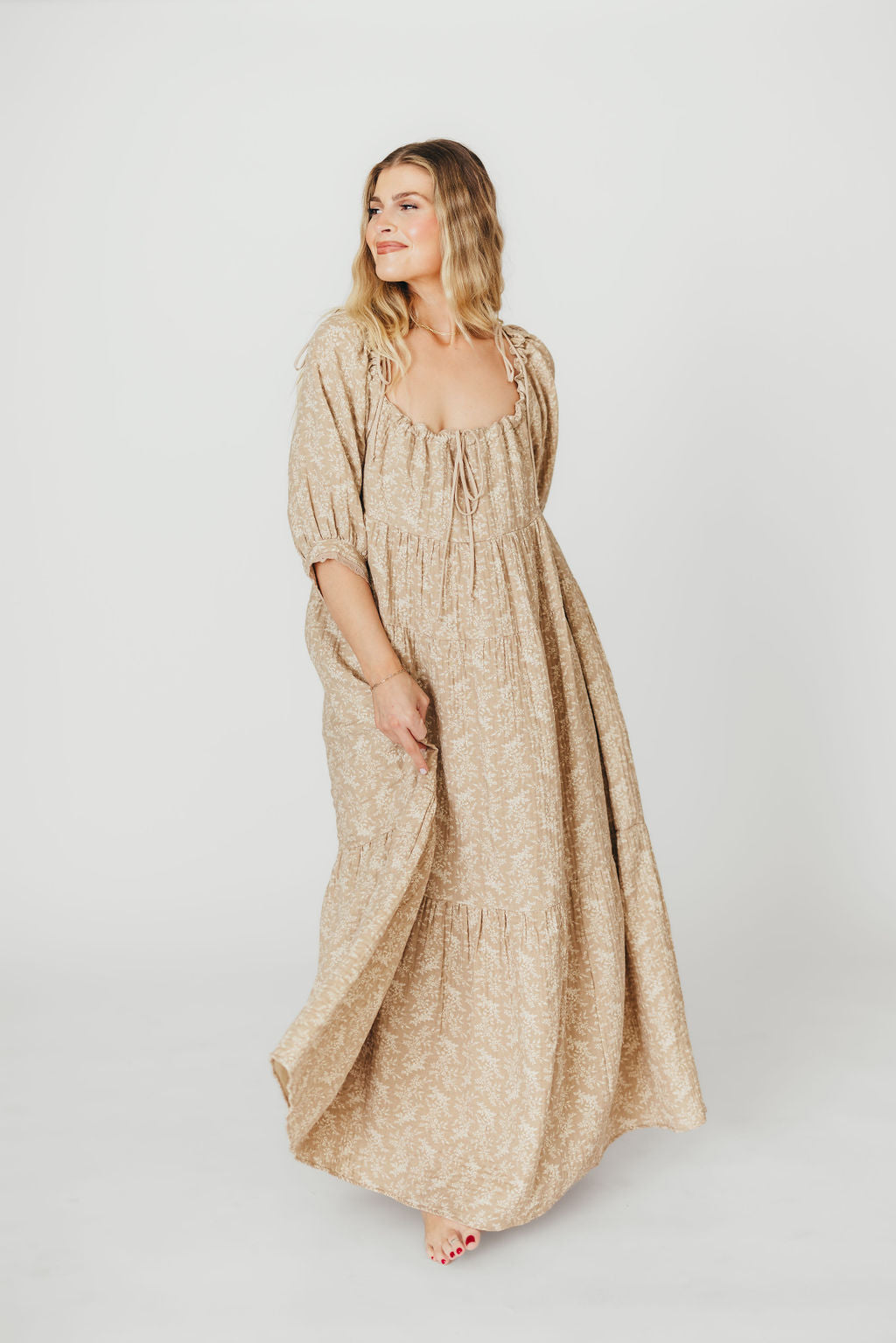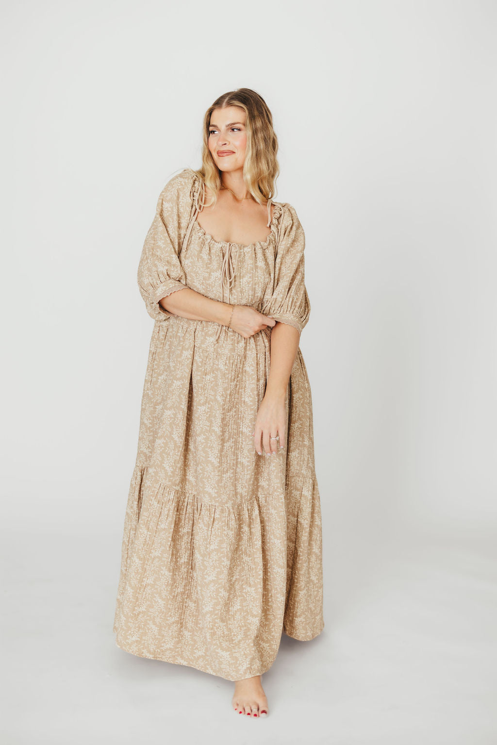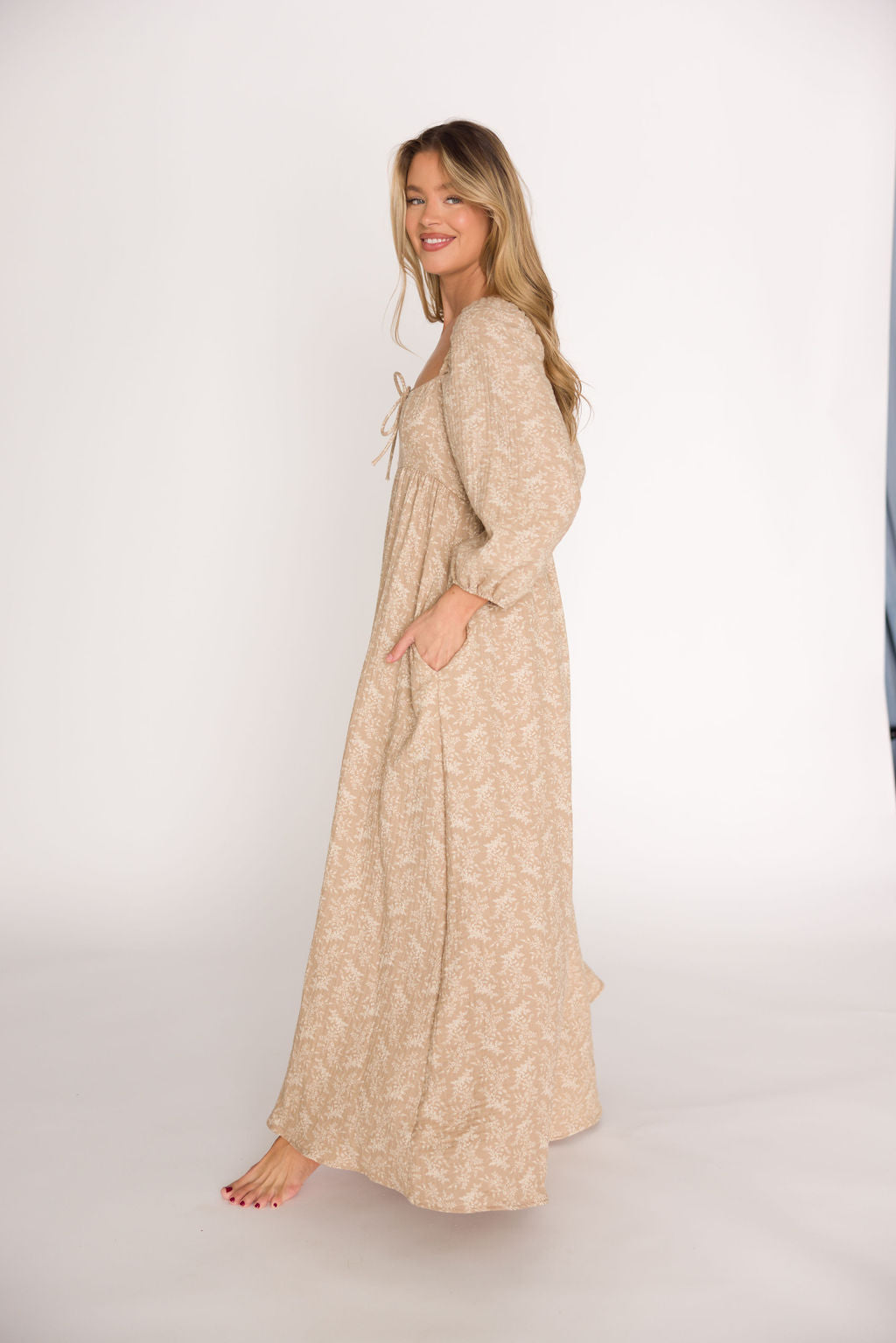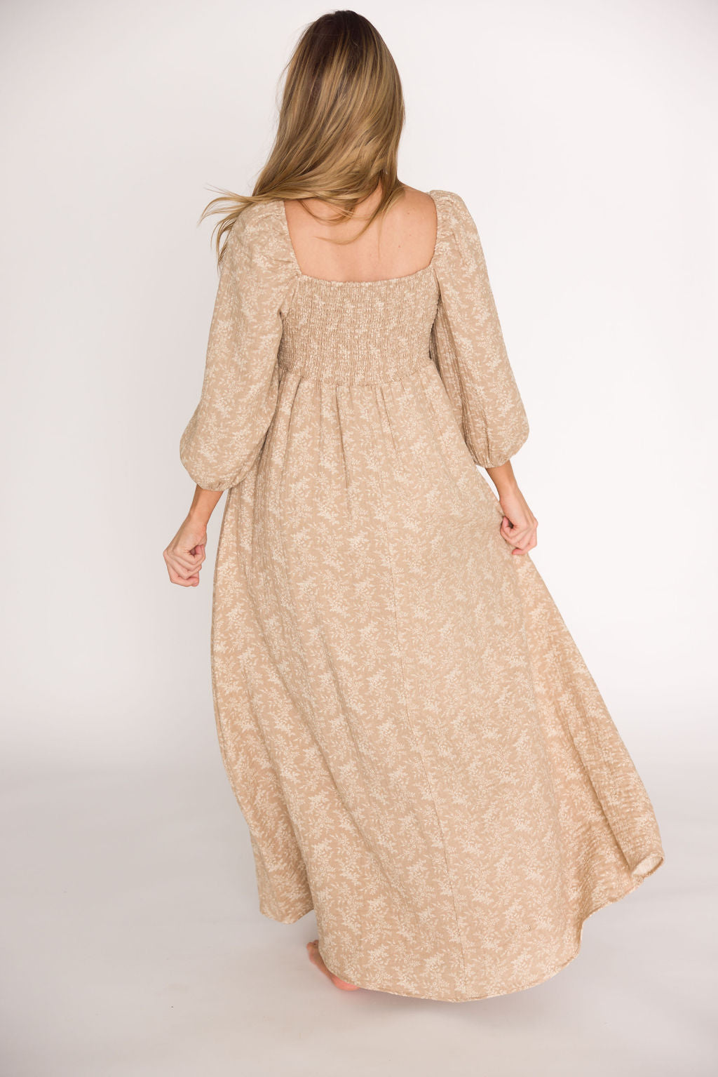 Peyton 100% Cotton Maxi Dress in Mocha Floral - Bump Friendly (XS-XL)
