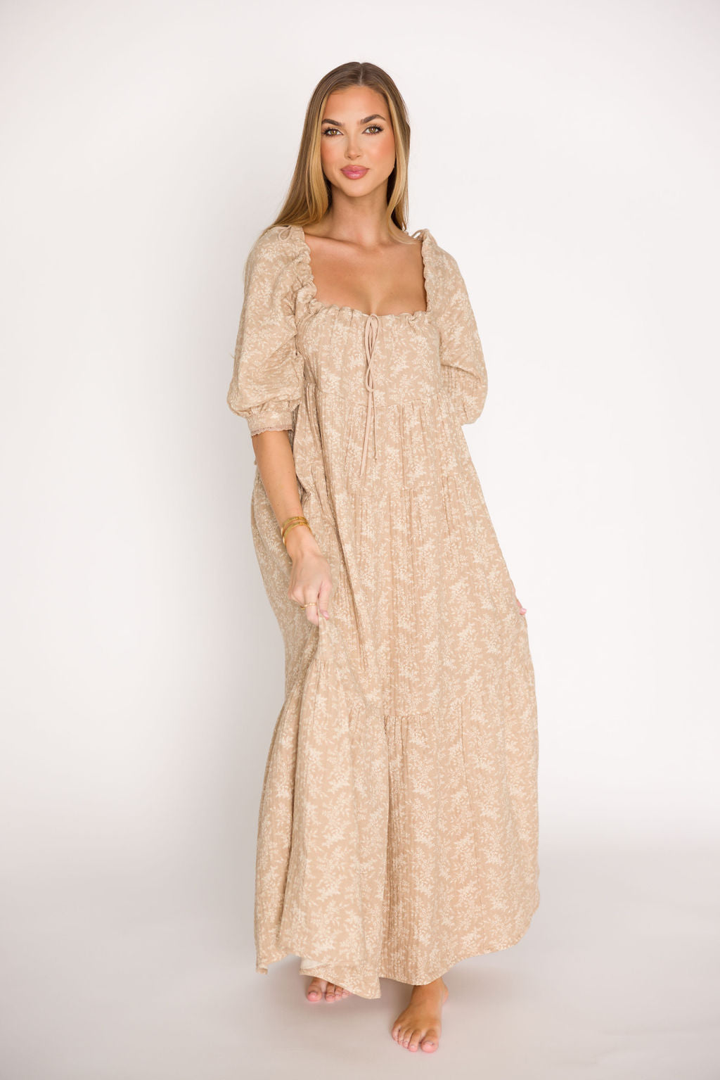 Cara 100% Cotton Maxi Dress in Mocha - Bump Friendly (XS-XL)