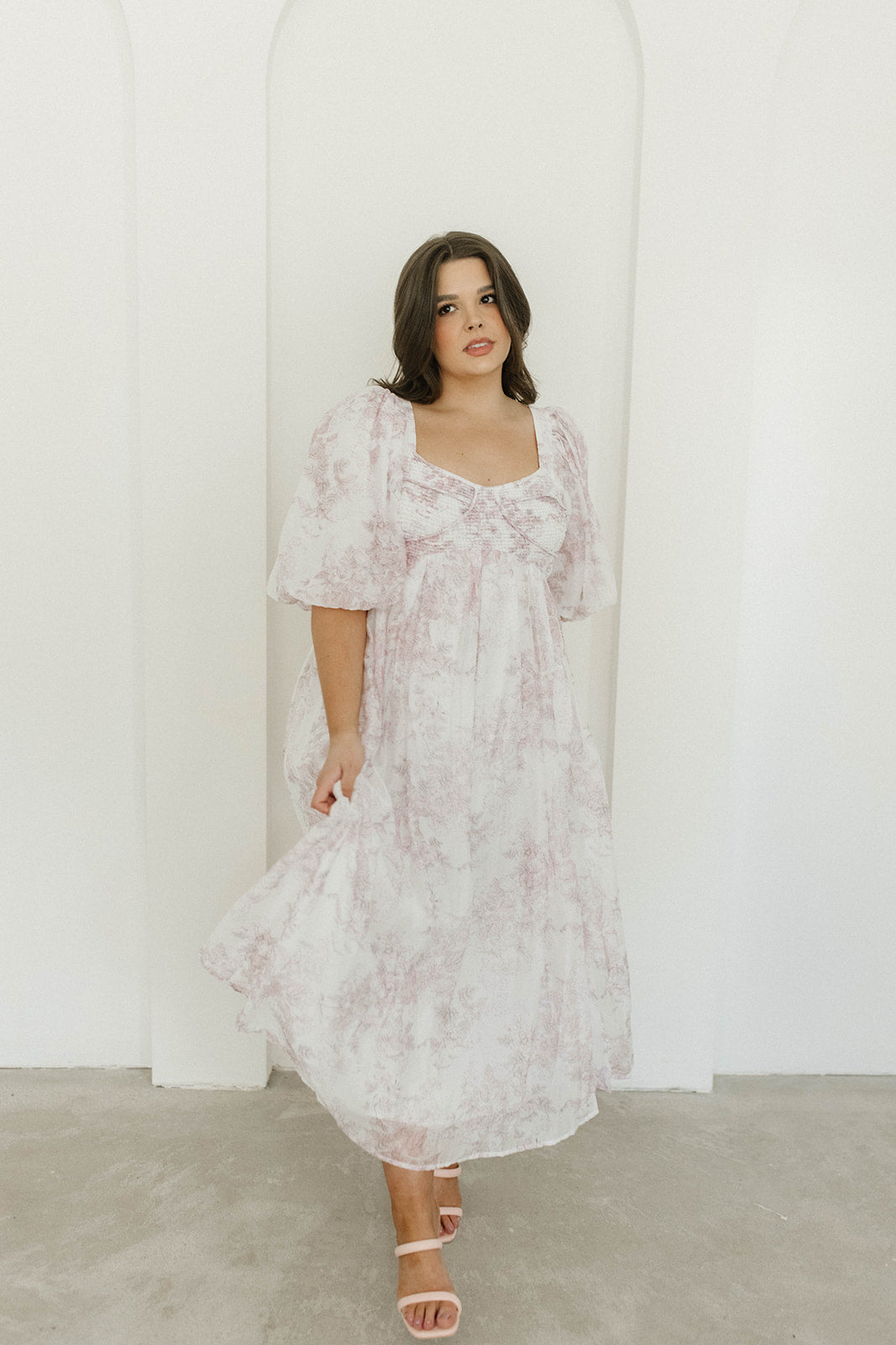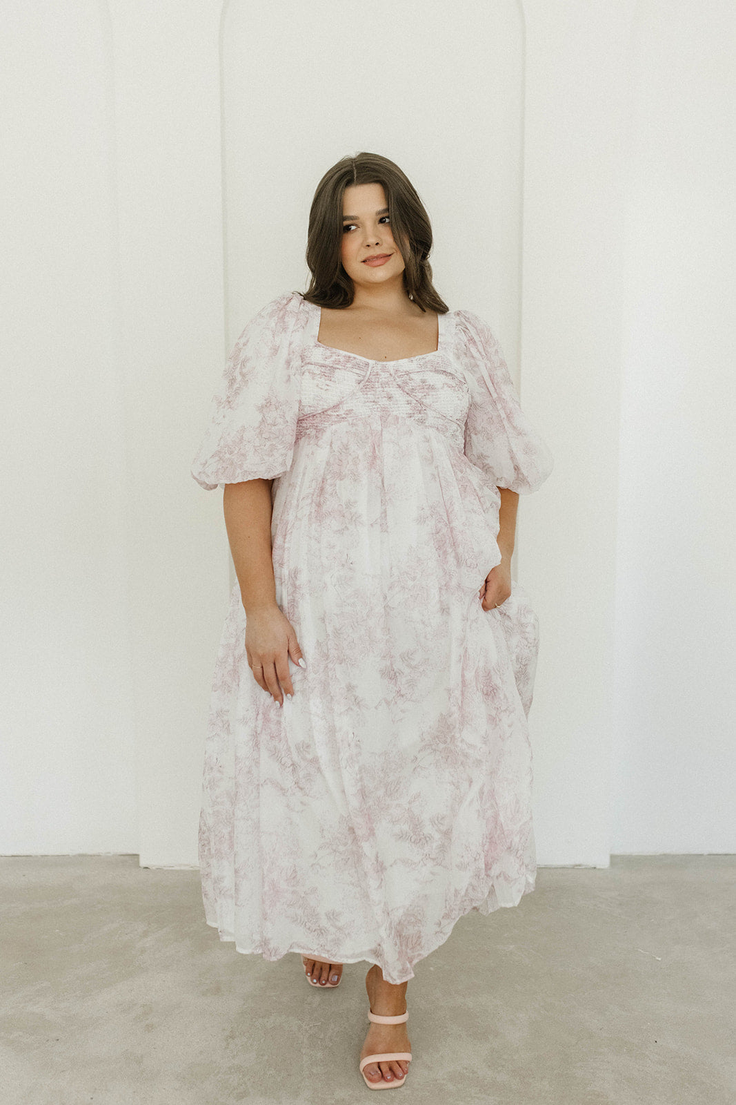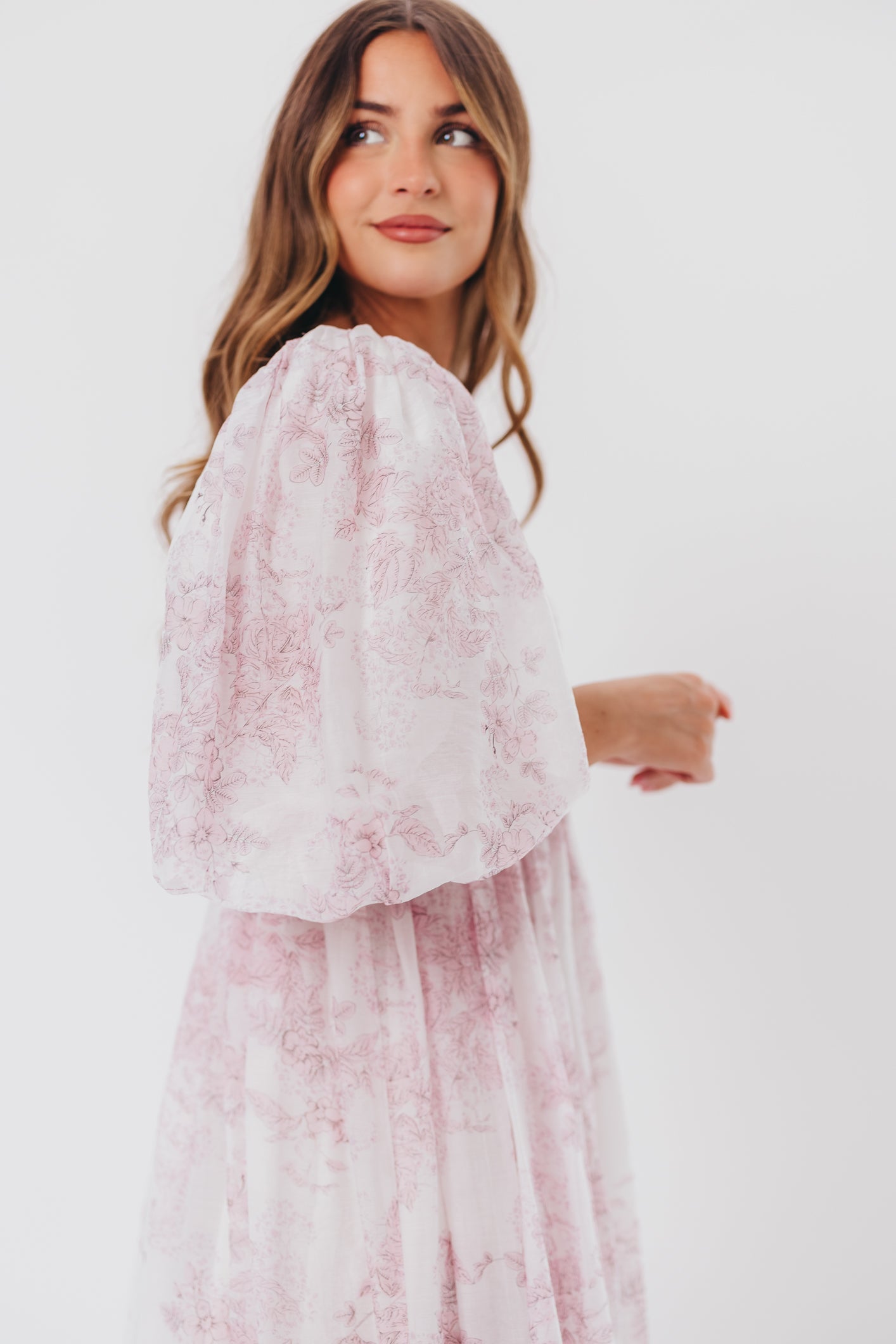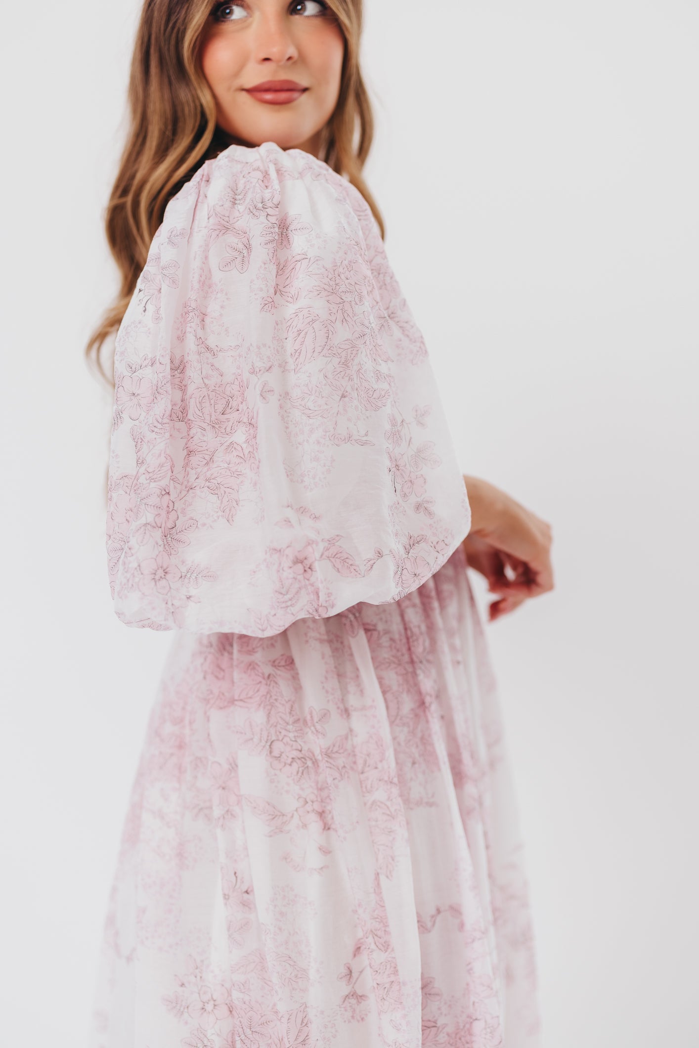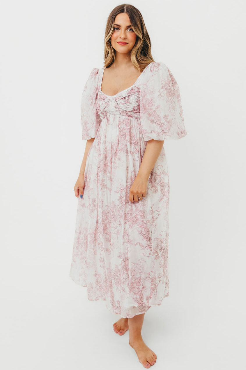 Harlow Midi Dress in Light Pink Floral - Bump Friendly & Inclusive Sizing (S-3XL)
