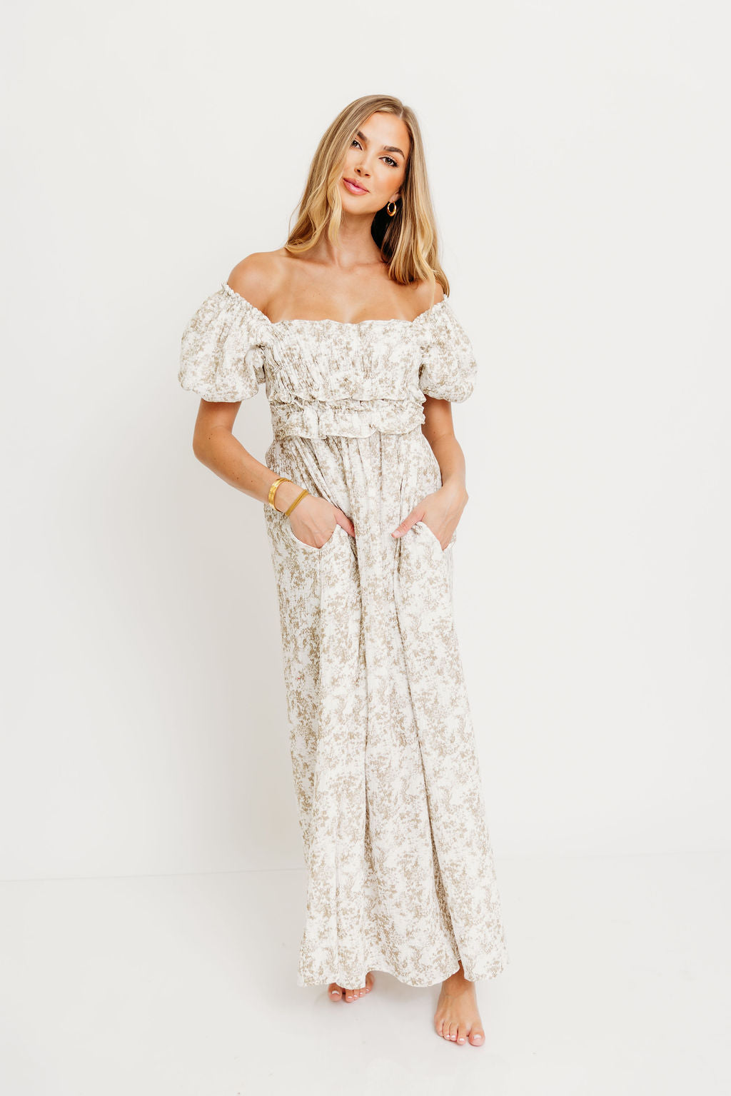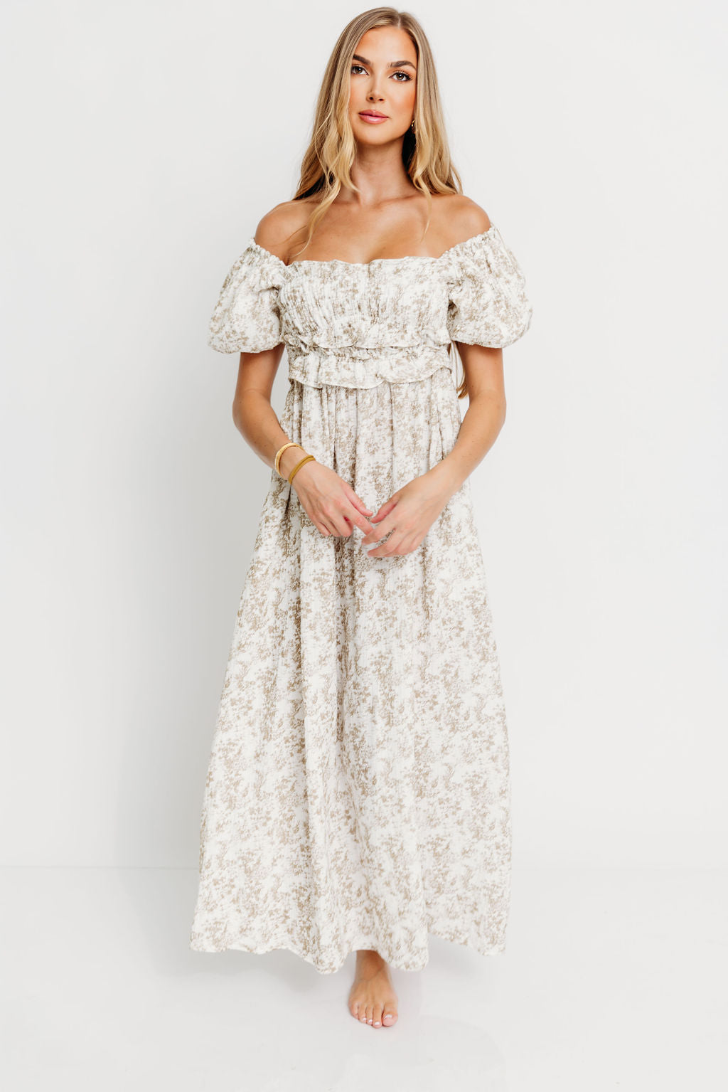 Finley 100% Cotton Peplum Midi Dress in Hampton Taupe - Bump & Nursing Friendly with Modest Back